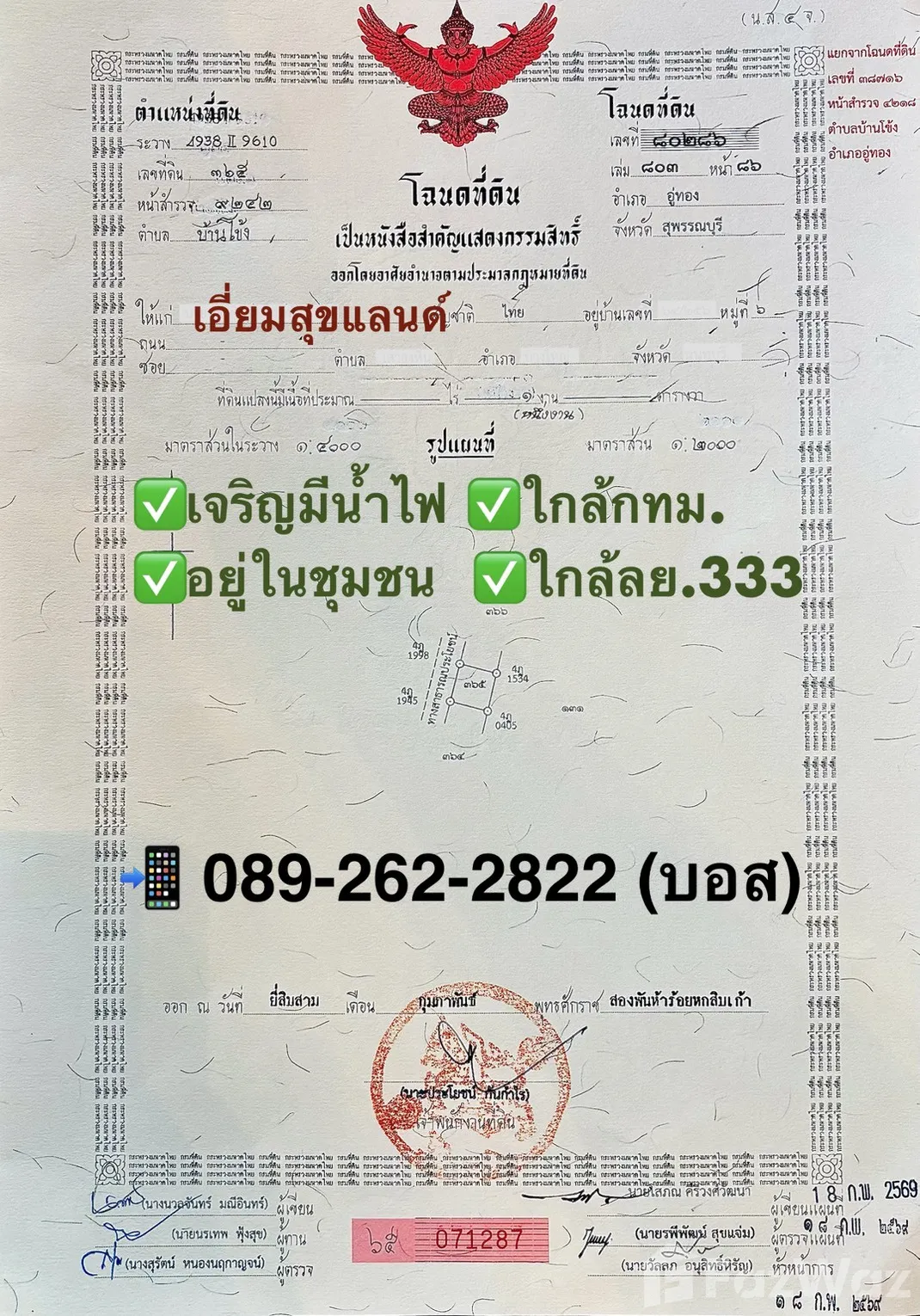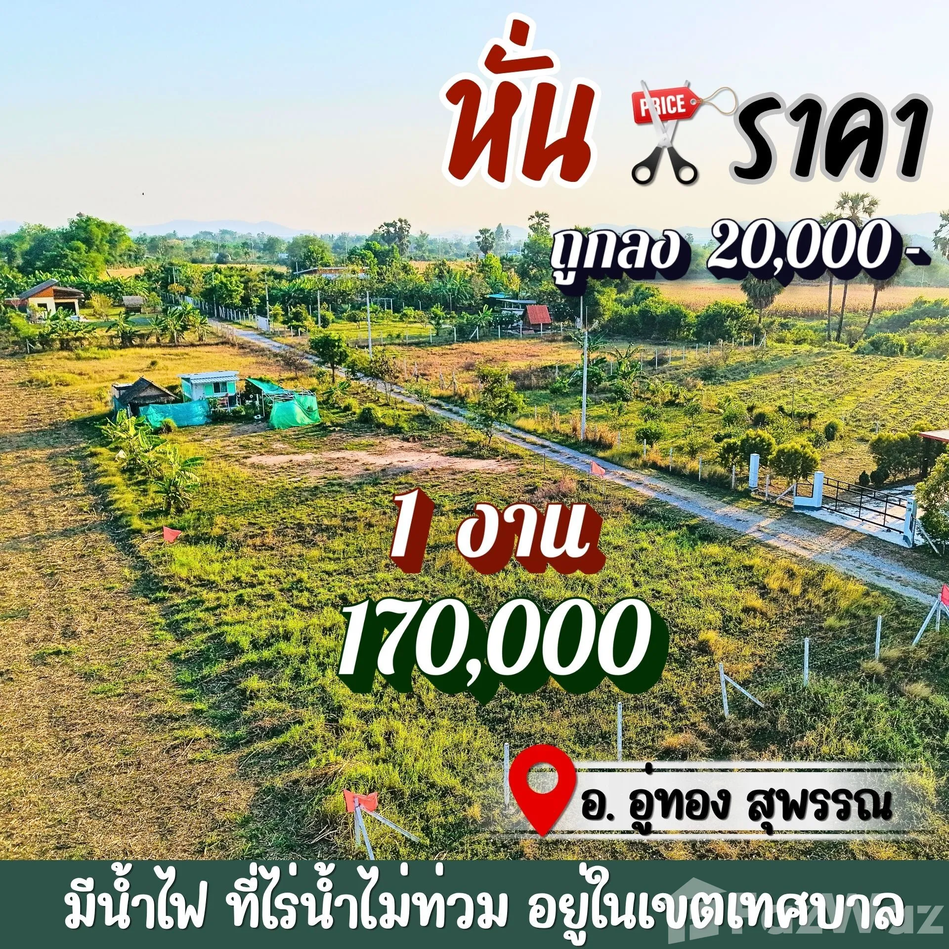 ที่ดินอู่ทองในเขตเทศบาลงานละ 170,000 มีน้ำไฟ ฟรีโอน ใกล้ กทม