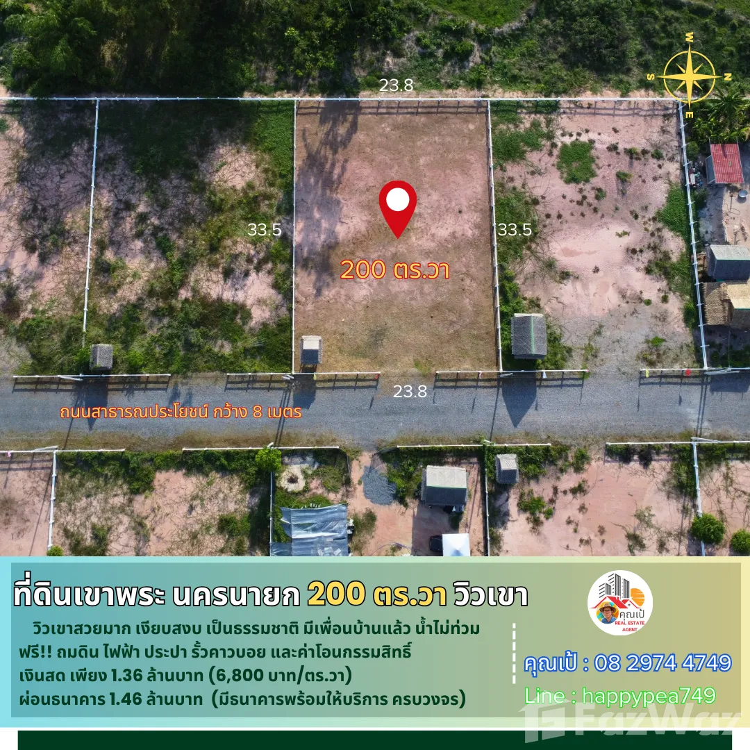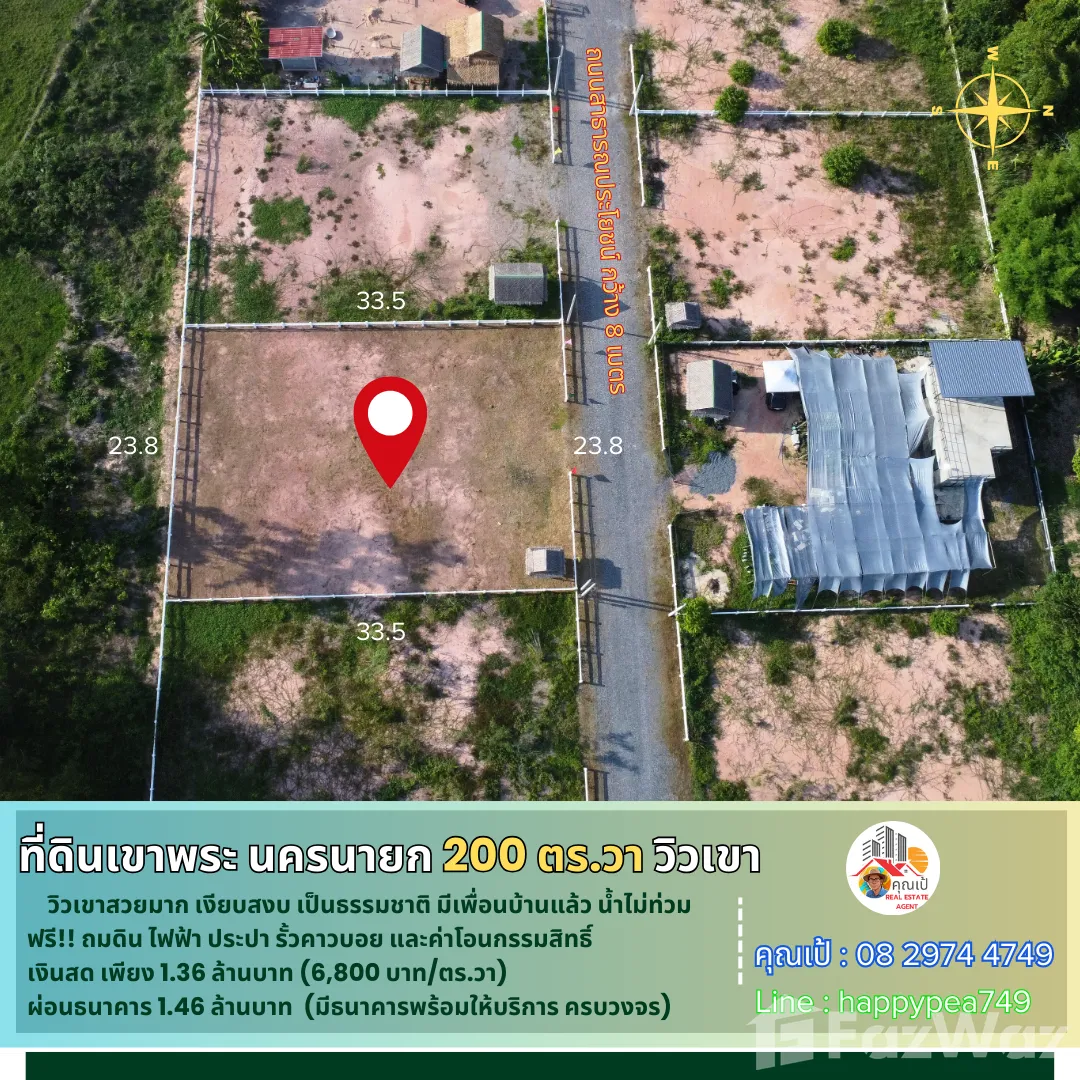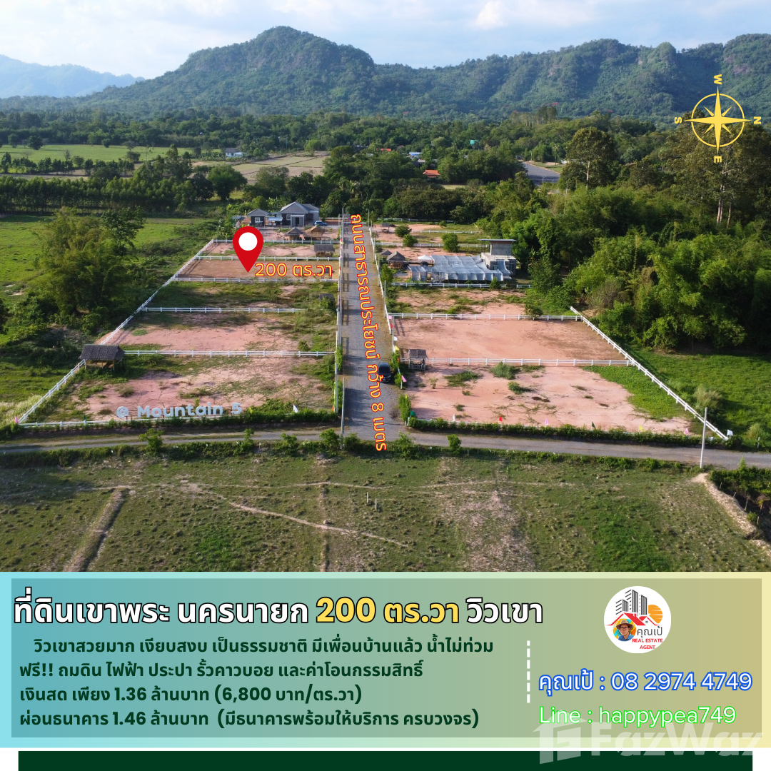 🎄 หากคุณสนใจที่ดินในจังหวัดนครนายก ที่ผ่อน-ขอสินเชื่อธนาคารได้ ในทำเลที่มีคุณภาพ คุ้มค่า วิวเขาสวยๆ บรรยากาศดี เงียบสงบ  เรามีที่ดินที่พัฒนาแล้ว พร้อมปลูกบ้านสวนในฝันตามจินตนาการของคุณได้เลย คุณไม่ต้องมาทำการพัฒนาที่ดินเองให้ยุ่งยากเสียเวลา โดยเราได้ทำการถมดิน-บดอัดอย่างดีมากว่า 3 ปี  พร้อมด้วยไฟฟ้า ประปา รั้วคอกม้าคาวบอย ถนนสาธารณะในโครงการ 8 เมตร โฉนดครุฑแดงพร้อมโอนกรรมสิทธิ์ ที่ดินแปลงนี้เข้าออกได้หลายทาง แล้วยังใกล้ร้านกาแฟสวนอาสาคาเฟ่ซึ่งเป็นจุดเช็คอินชื่อดัง ที่สำคัญที่ตรงนี้น้ำไม่ท่วม และไม่มีปัญหาไฟป่าด้วย ตอนนี้ก็มีเพื่อนบ้านมาปลูกบ้านทำสวน 2 ถึง 3 แปลงแล้ว  💵 นอกจากนี้ยังตอบโจทย์ท่านที่มีเครดิตดี ไม่ต้องการใช้เงินสดซื้อ ก็เป็นเจ้าของที่ดินแปลงนี้ได้ โดยเรามีธนาคารให้บริการสินเชื่อที่ดินครบวงจร ครับ🎏 จุดเด่น-วิวเขาสวยมาก-เงียบสงบ สัมผัสธรรมชาติ-น้ำไม่ท่วม-ไม่มีไฟป่า🚧 ที่ตั้ง      ตำบล พรหมณี อำเภอเมืองนครนายก นครนายก 26000 📍การปักหมุดนำทาง      พิกัด แปลงที่ดิน  br />🧶 ผังเมืองสีเขียว ประเภทชนบทและเกษตรกรรม📍 สถานที่สำคัญใกล้เคียง          ตัวเมือง นครนายก 12 กม.         โรงพยาบาลนครนายก 10 กม.          รร.นายร้อย จปร.  7 กม.           เอเดนฟาร์ม  12 กม.         วัดถ้ำสาริกา 16 กม.         อุทยานพระพิฆเนศ 10 กม.          ตลาดเท่ง เถิดเทิง 12 กม.         วัดหลวงพ่อปากแดง 12 กม.         น้ำตกสาริกา 19 กม.        เขื่อนขุนด่านปราการชล 25 กม.🗺️ ข้อมูลที่ดิน     🌿 เป็นโฉนดที่ดิน น.ส.4 ครุฑแดง ติดถนนสาธารณประโยชน์  🏷️      =>รวมเนื้อที่ที่ดิน 2 งาน  หรือ 200 ตารางวา 💰 ข้อมูลราคา 💵=กรณีซื้อ "เงินสด" ราคา 1,360,000 บาท  วางมัดจำ 30,000 บาท ฟรีค่าโอน นัดโอนกรรมสิทธิ์ได้เลยครับ=กรณี "ขอสินเชื่อธนาคาร"  ราคาขาย 1,460,000บาท มัดจำจำนวน 20,000 บาทครับ  ฟรีค่าโอน บริการธนาคารที่ปล่อยสินเชื่อที่ดินเปล่าครบวงจร หรือจะยื่นกู้พร้อมสร้างบ้านก็ได้ บริการฟรี🌟 โอกาสดีในการเป็นเจ้าของที่ดินสวย ที่คุณไม่ควรพลาด! 🔑📢สอบถามรายละเอียดเพิ่มเติม พูดคุยได้ สบายๆ เป็นกันเอง ติดต่อ 🤵คุณเป้ Real Estate Agentรับฝาก ซื้อ-ขาย ที่ดินสวย เพื่อการลงทุน ธุรกิจ และอยู่อาศัย📞Tel. 08 2974 4749 📟 Line : happypea749  คลิก br />🎉ดูที่ดินแปลงอื่นๆbr />#ที่ดินเขาพระ #ที่ดินนครนายก #ที่ดินแบ่งขาย #ที่ดินนครนายกแบ่งขาย #ที่ดินจัดสรรนครนายก #นครนายก #ขายที่ดินนครนายก #ที่ดินนครนายกราคาถูก  #ที่ดินเกษตร #วิวเขาพระ #บ้านพักตากอากาศนครนายก #สวนเกษตรนครนายก #รีสอร์ทนครนายก #เที่ยวนครนายก #บ้านสวนนครนายก #บ้านสวนเขาพระ #สวนทุเรียนนครนายก #สวนมะยงชิดนครนายก #สวนผลไ