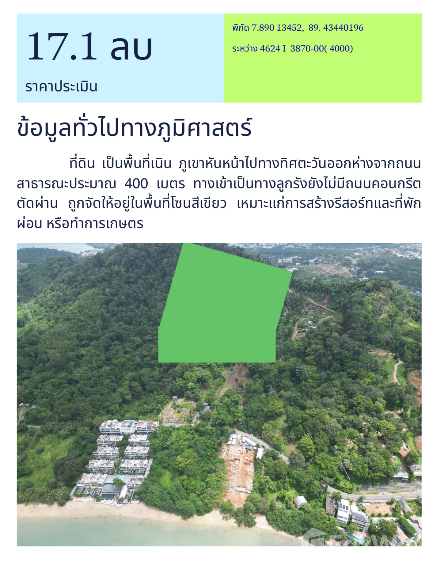 อสังหาริมทรัพย์นี้เป็นที่ดินสำหรับขาย มีขนาดพื้นที่ 33,600 ตรม. อยู่ในทำเล รัษฎา, ภูเก็ต ซึ่งคุณสามารถซื้อ ที่ดิน นี้ได้ที่ราคา ฿149,000,000 (฿0/ตรม.)