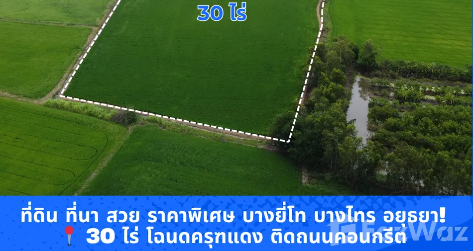 ที่ดิน ที่นา บางไทร อยุธยา! สวย ราคาพิเศษ ขนาด 30 ไร่