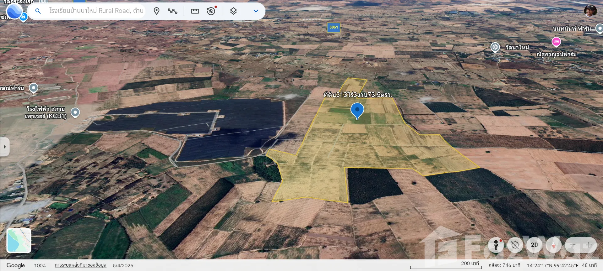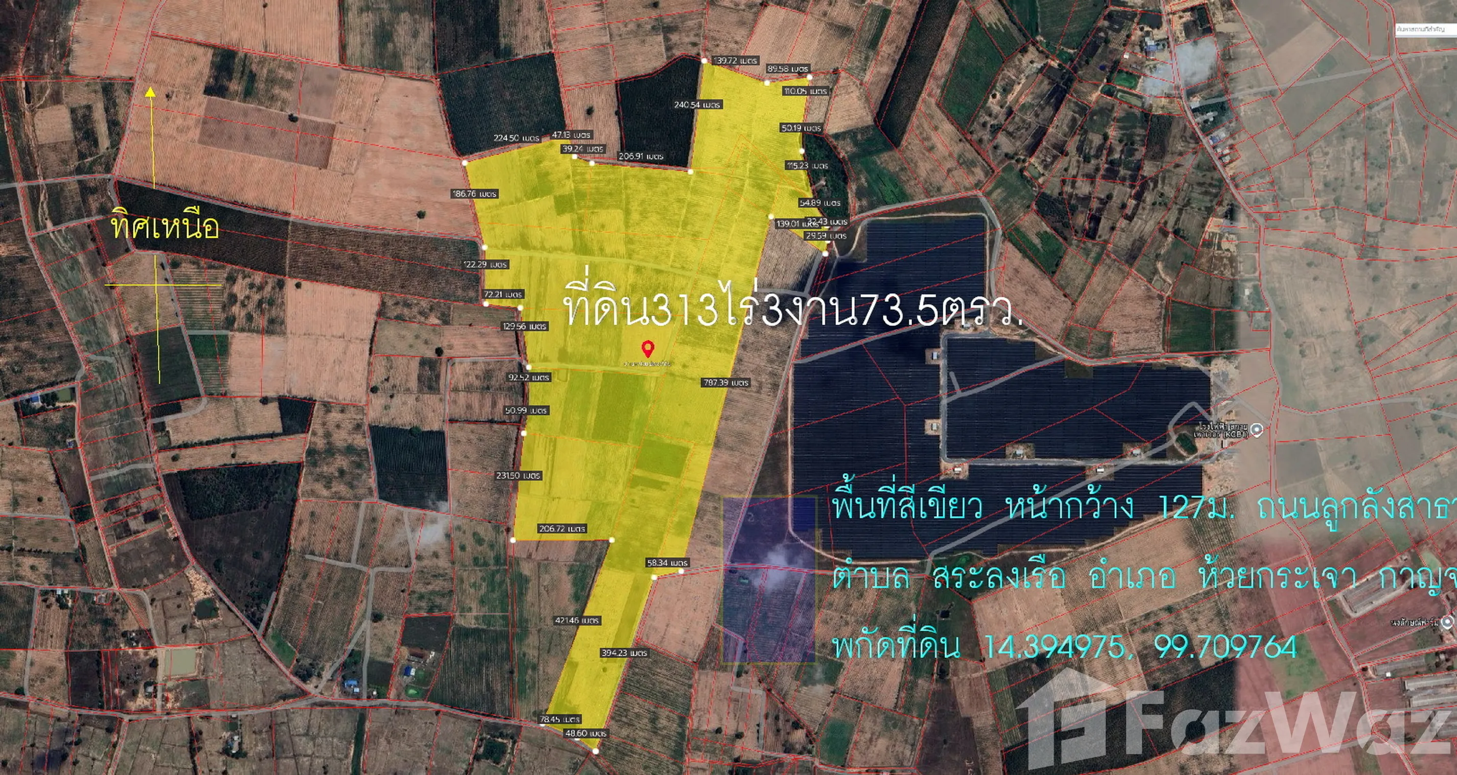 ขายที่ดิน313ไร่3งาน73ตรว. พื้นที่สีเขียว หน้ากว้าง 127ม.