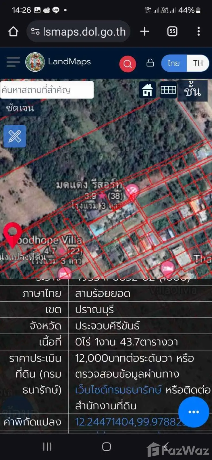 อสังหาริมทรัพย์นี้เป็นที่ดินสำหรับขาย มีขนาดพื้นที่ 574.80 ตรม. อยู่ในทำเล สามร้อยยอด, หัวหิน ซึ่งคุณสามารถซื้อ ที่ดิน นี้ได้ที่ราคา ฿2,240,000 (฿0/ตรม.)