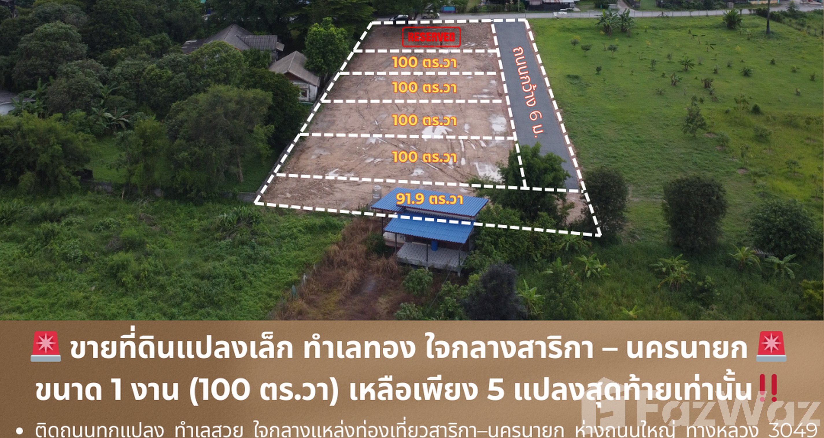 ขายที่ดินแปลงเล็ก ทำเลทอง ใจกลางสาริกา – นครนายก 100 ตร.วา