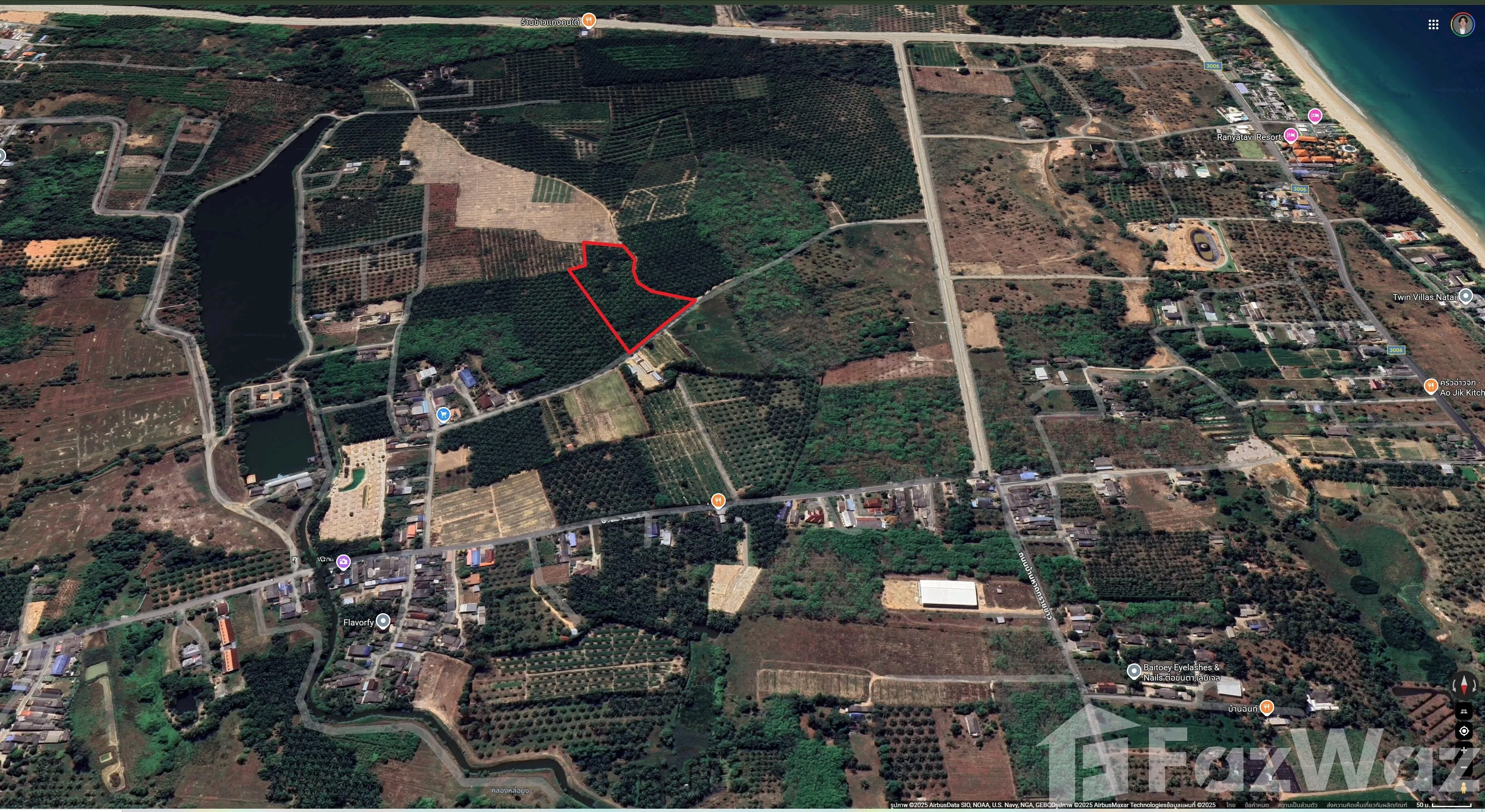 • Price: 4,000,000 THB/Rai → 10,000 THB/sq.wah → 2,500 THB/sqm → Total: 44,160,000 THB