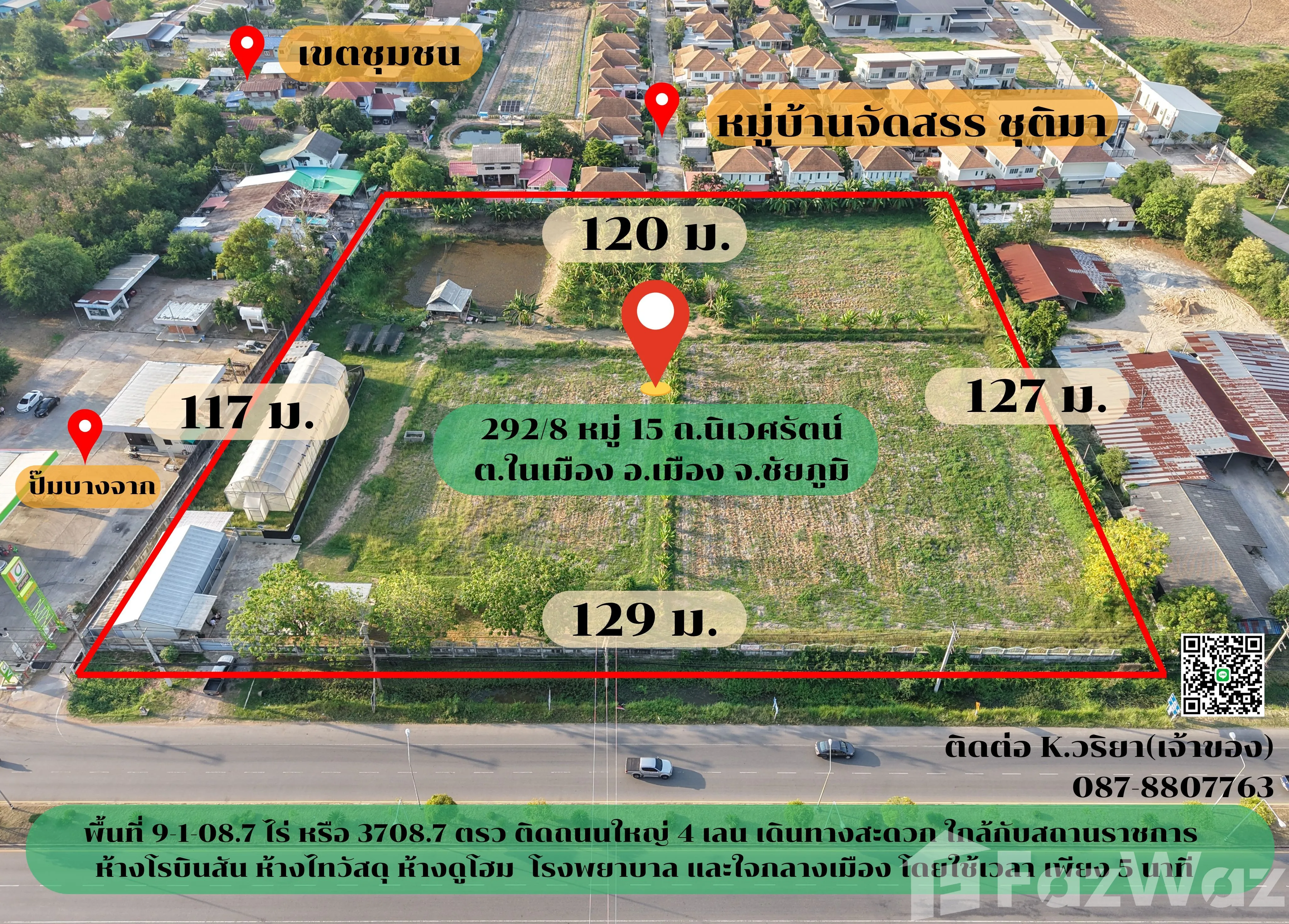 ที่ดิน ทำเลทอง จ.ชัยภูมิ-พื้นที่ 9-1-08.7 ไร่ หรือ 3708.7 ตรว ติดถนน 4 เลน-มี่รั้วคอนกรีต รอบชิดทุกด้าน ชัดเจน -เดินทางสะดวก ใกล้ 4 แยกโรงต้ม(บายพาสชัยภูมิ) เชื่อมต่อสู่จ.ขอนแก่น และ จ. โคราช -ใกล้ เขตชุมชน,หมู่บ้านจัดสรร,โรงพยาบาล,สำนังงานราชการ-ใกล้ห้างสรรพสินค้า ดังนี้ ห้างโรบินสัน,ห้างไทวัสดุ,ห้างดูโฮม,ห้างบิ๊กซี และห้างโฮมโปร