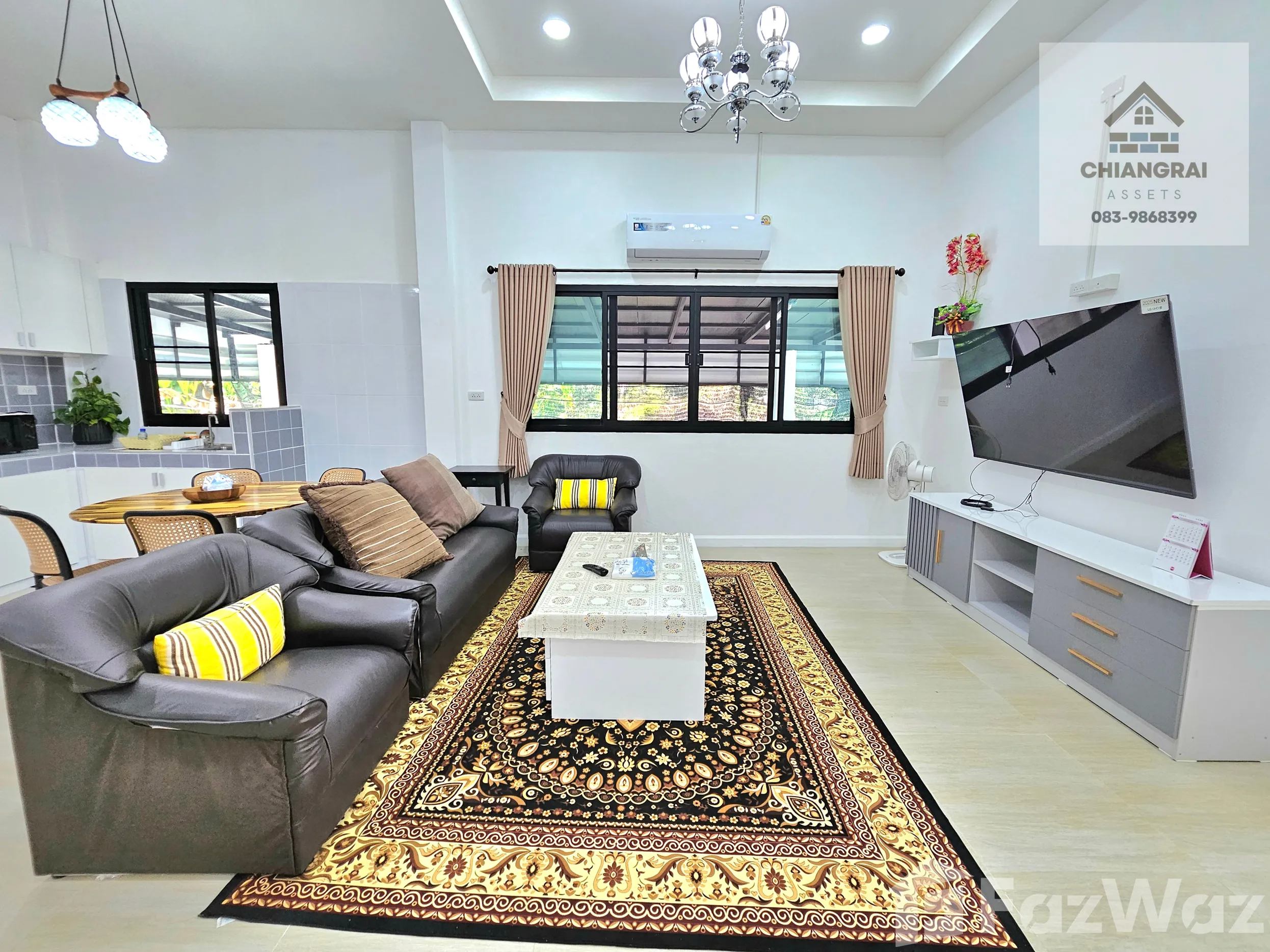อสังหาริมทรัพย์นี้เป็น บ้านเดี่ยว สำหรับขาย ขนาด 2 ห้องนอน มีพื้นที่ใช้สอย 153 ตรม. อยู่ในทำเล รอบเวียง, เชียงราย และสร้างเสร็จแล้วเมื่อ มิ.ย. 2568 ซึ่งคุณสามารถซื้อ บ้านเดี่ยว ได้ที่ราคา ฿5,000,000 (฿32,680/ตรม.) หรือทำสัญญาเช่าระยะยาว ที่ราคาค่าเช่า ฿25,000 ต่อเดือน