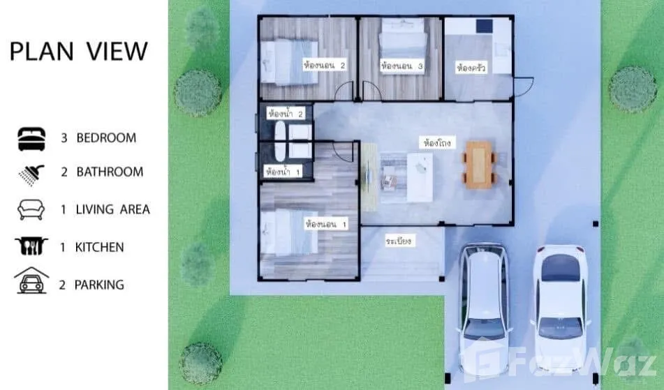 3 ห้องนอน 2 ห้องน้ำ น้ำไม่เคยท่วม