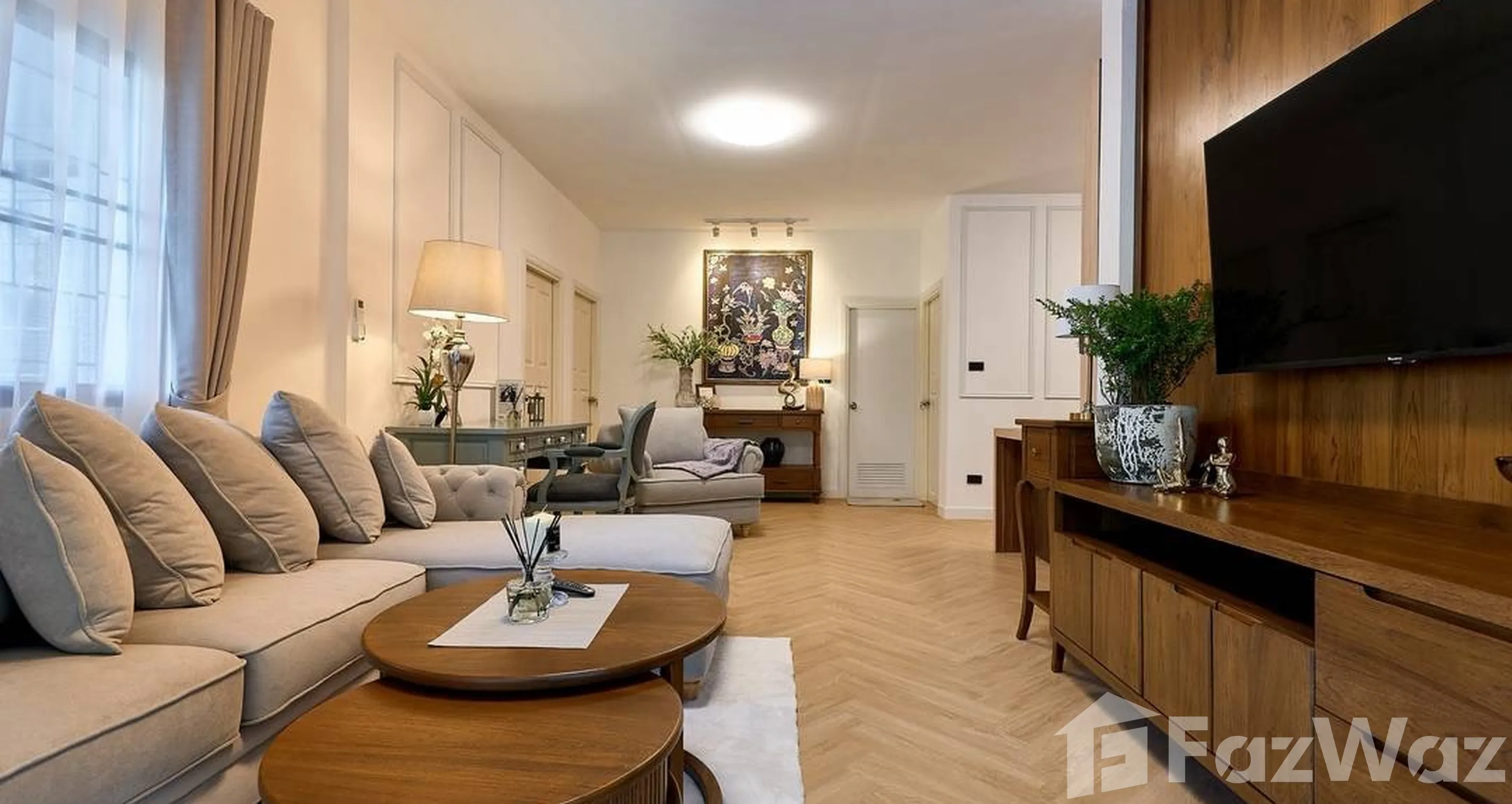 สัมผัสเสน่ห์บ้านชั้นเดียวที่ผสมผสานความทันสมัยเข้ากับความคลาสสิกอย่างลงตัว ตกแต่งด้วยเฟอร์นิเจอร์ไม้สักเก่าที่ให้ความรู้สึกมั่นคงและยั่งยืน บนทำเลศักยภาพที่เป็นส่วนตัวและปลอดภัยในโครงการหมู่บ้านวังตาล
