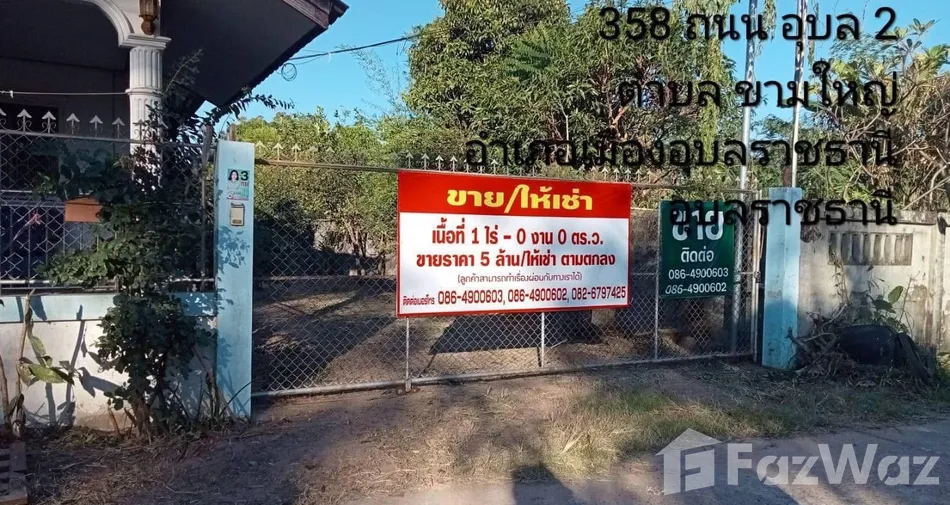 ขายบ้านเดี่ยวพร้อมที่ดินและห้องพัก เนื้อที่ 1 ไร่ ราคา 5 ล้านบาท   📍 รายละเอียดทรัพย์  • ประเภท: บ้านเดี่ยวพร้อมที่ดินและห้องพัก  • พื้นที่: 1 ไร่ (1,600 ตารางเมตร)  • ราคา: 5,000,000 บาท  • ที่ตั้ง: ตำบลขามใหญ่ ซอยเทคโนเก่า เลี้ยวซอย ปราบวงษา เมือง อุบลราชธานี   🏡 ลักษณะเด่นของทรัพย์  • บ้านเดี่ยวหลังใหญ่ สร้างด้วยวัสดุคุณภาพดี  • มีพื้นที่ใช้สอยกว้างขวาง รองรับการพักอาศัยและทำกิจการ  • ห้องพักให้เช่าหรือสำหรับครอบครัว พร้อมอยู่  • มีสวนร่มรื่น และพื้นที่ว่างสำหรับทำเกษตรหรือเพิ่มสิ่งปลูกสร้าง  • ทำเลดี เดินทางสะดวก ใกล้ถนนใหญ่   📌 สิ่งอำนวยความสะดวกในพื้นที่  • น้ำประปาและไฟฟ้าพร้อมใช้งาน  • ระบบรักษาความปลอดภัยดี  • ใกล้ตลาด โรงเรียน โรงพยาบาล และแหล่งช้อปปิ้ง   💬 ติดต่อสอบถาม สนใจนัดชมบ้านหรือสอบถามข้อมูลเพิ่มเติม ติดต่อได้ที่ 📞 โทร: 086-4900603 คุณโต้ 📞 โทร :086- 4900602 คุณนิด 📞 โทร :086- 4486876 คุณปลา 🌺เจ้าของที่ขายเองค่ะ🌺 โอกาสดีๆ สำหรับผู้ที่มองหาบ้านพร้อมที่ดินในทำเลที่ดี