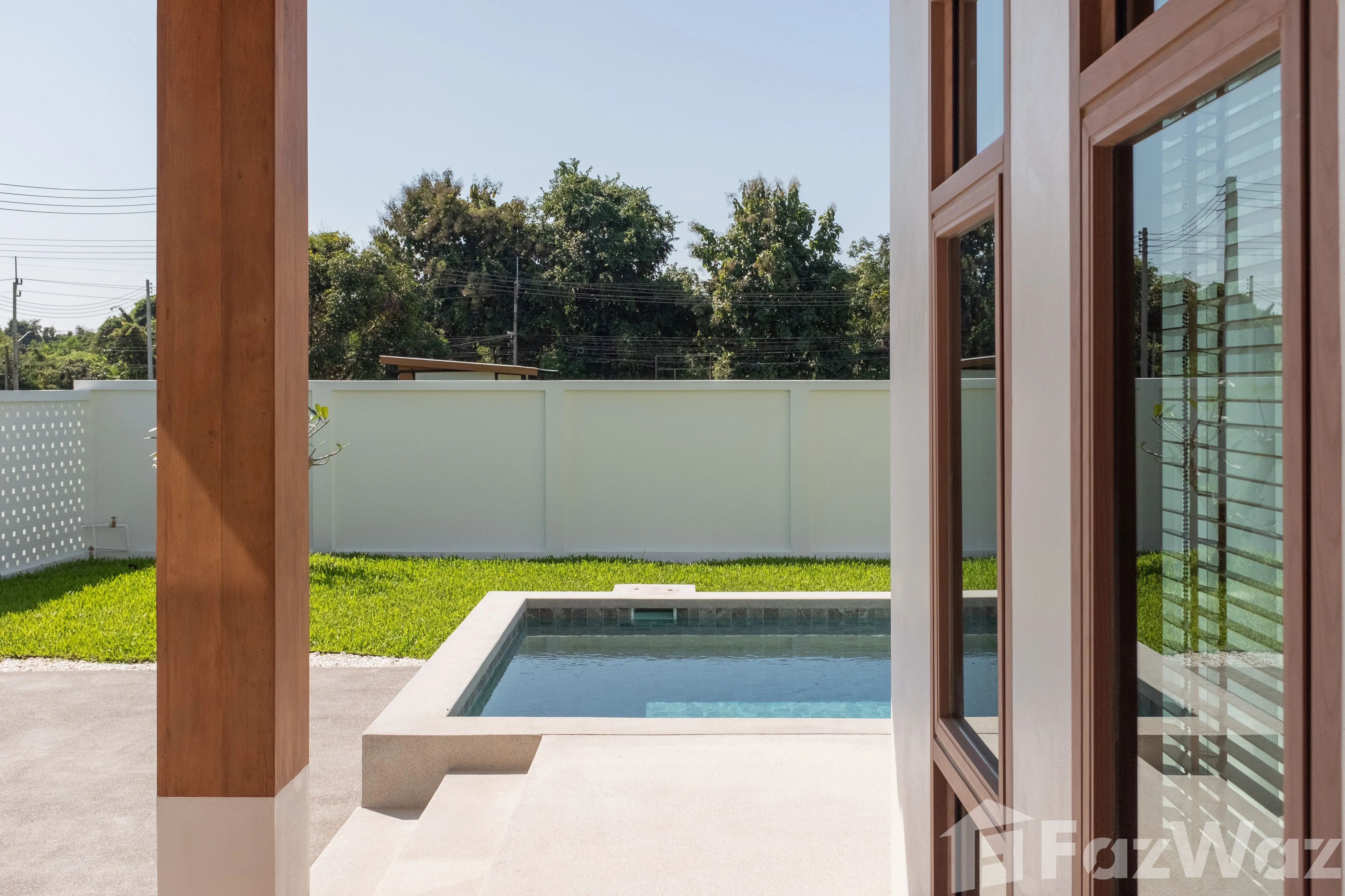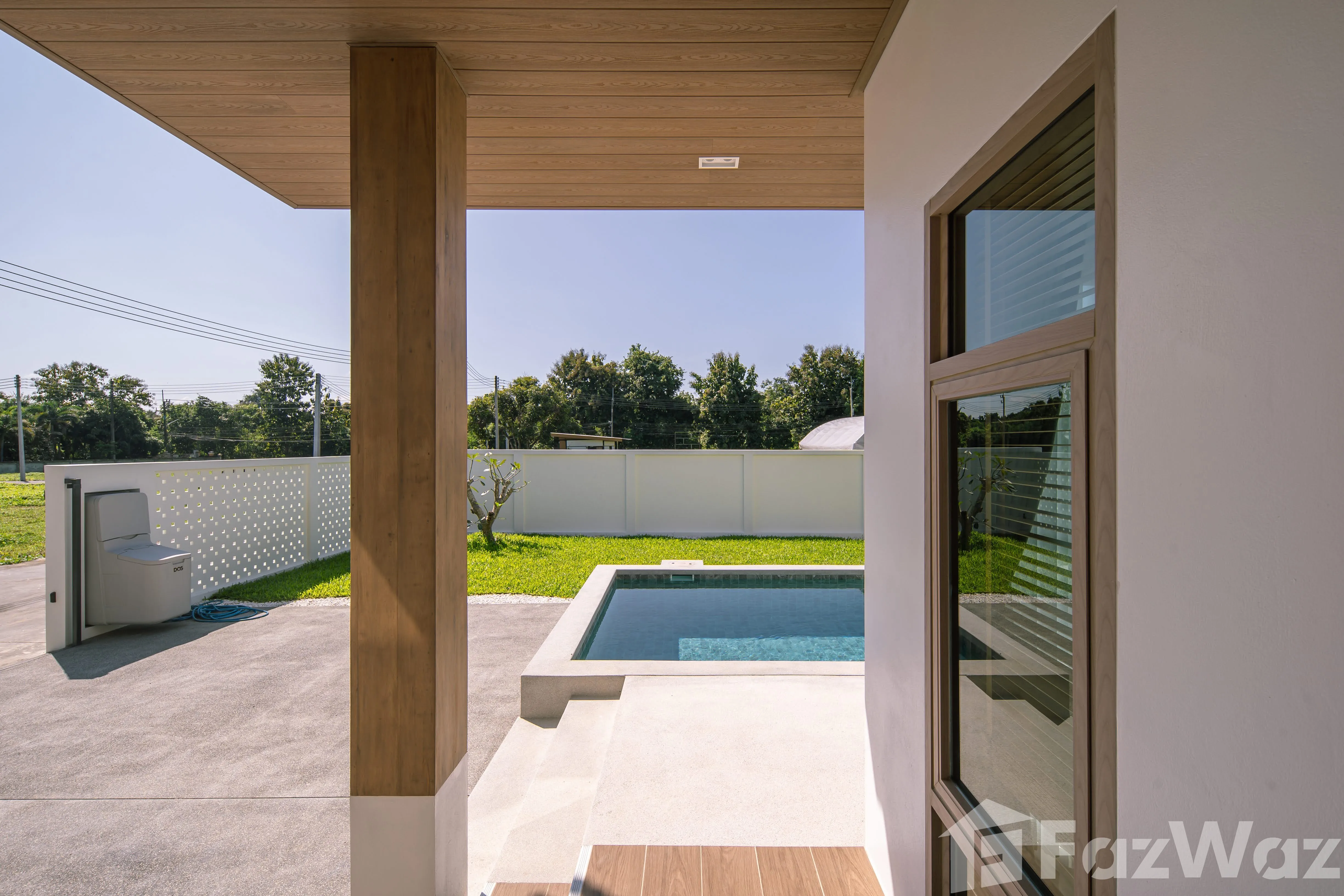 สระว่ายน้ำส่วนตัวสระว่ายน้ำส่วนตัว เข้าถึงสระส่วนกลางได้เข้าถึงสระส่วนกลางได้ ชานบ้านชานบ้าน ที่จอดรถที่จอดรถ