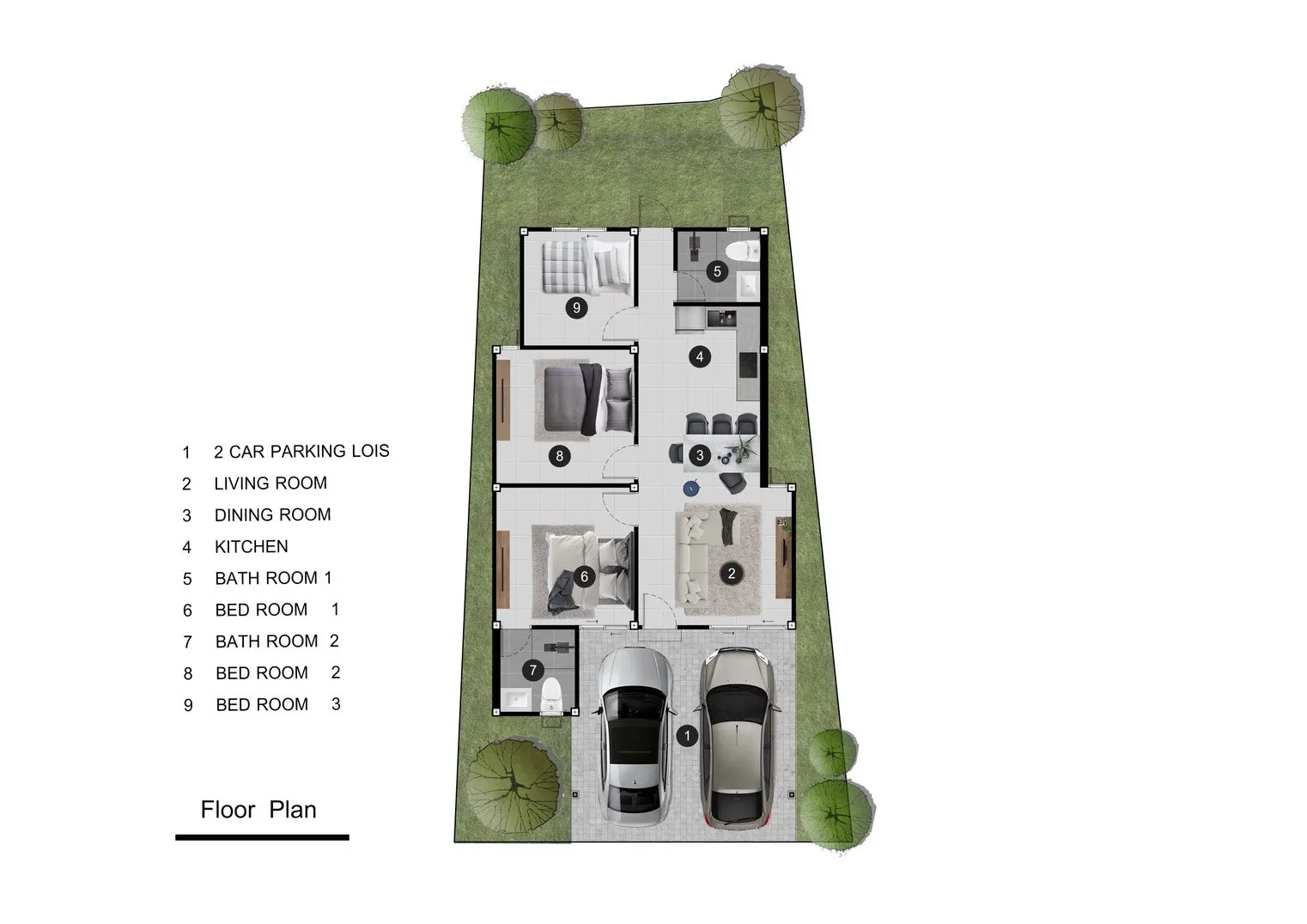 เป็นการรวมขนาดของพื้นที่ก่อสร้างภายนอก เช่น สระว่ายน้ำ, ชานบ้าน, ที่จอดรถ และ ศาลา แต่จะไม่รวมพื้นที่สวนเข้าไปด้วย