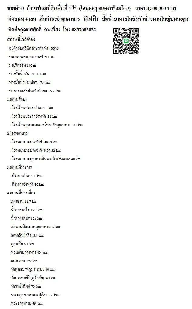 📣 ขายด่วน!! ! บ้านพร้อมที่ดิน 4 ไร่ ติดถนนใหญ่ มุกดาหาร