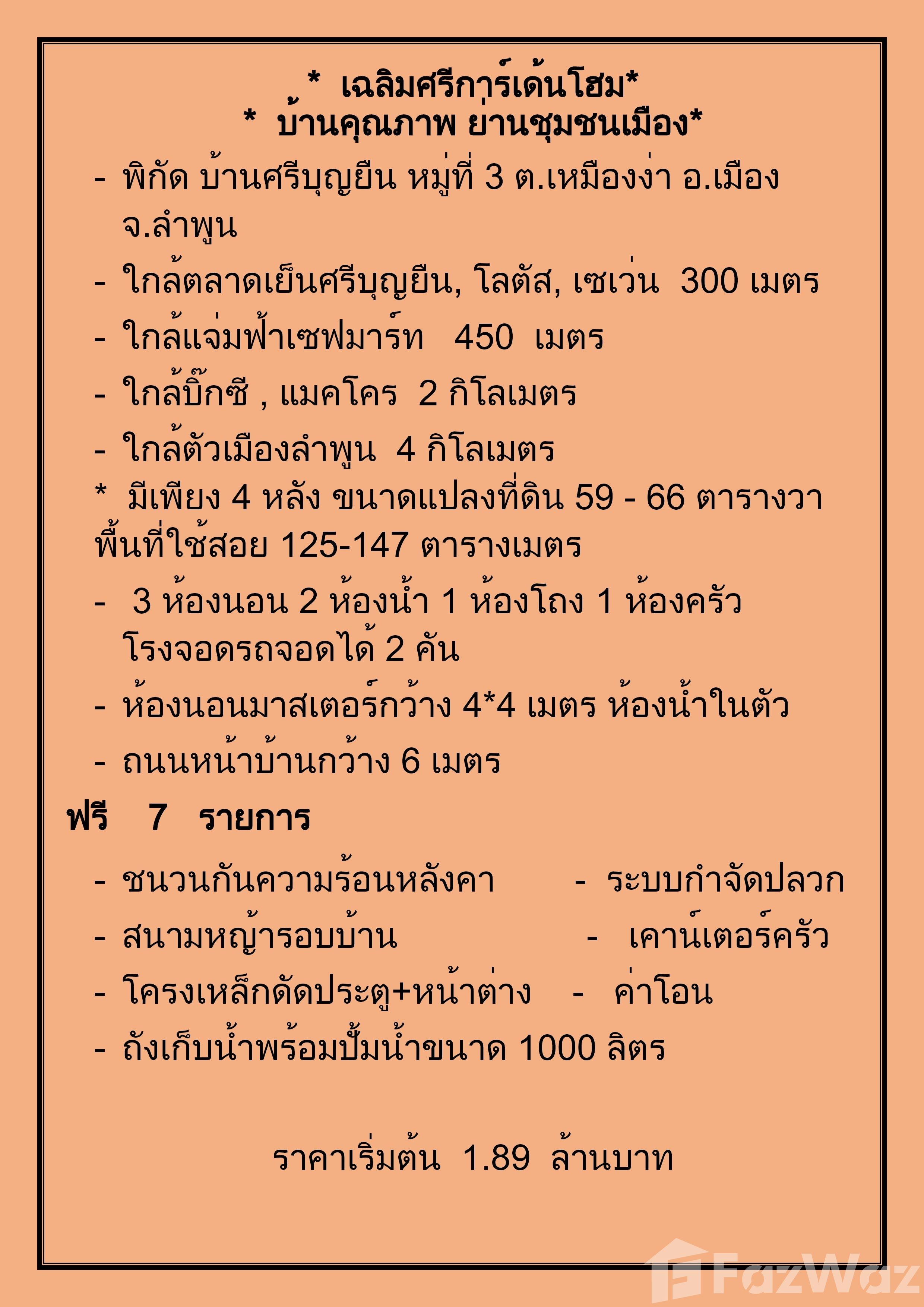 ขายบ้านเดี่ยว 3 ห้องนอน ในทำเล เมืองลำพูน, ลำพูน