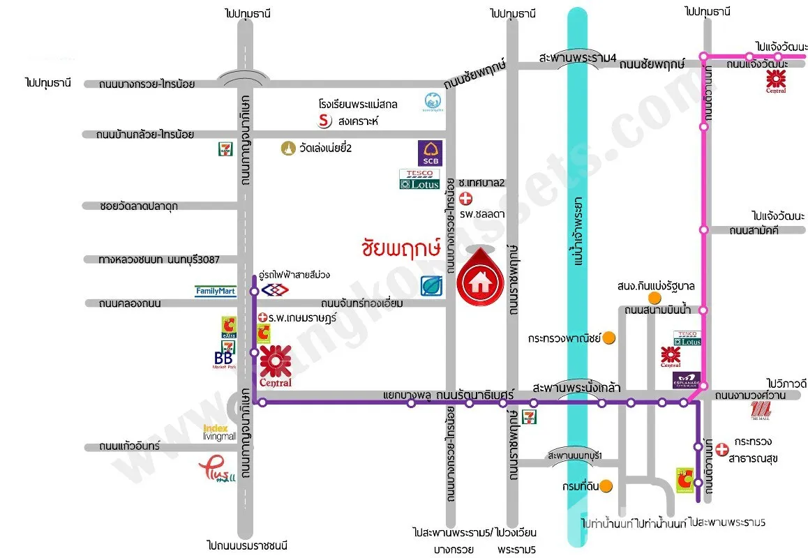 - ใกล้โรงพยาบาลเกษมราษฎร์ รัตนาธิเบศร์, โรงพยาบาลบางบัวทอง, โรงพยาบาลชลลดา