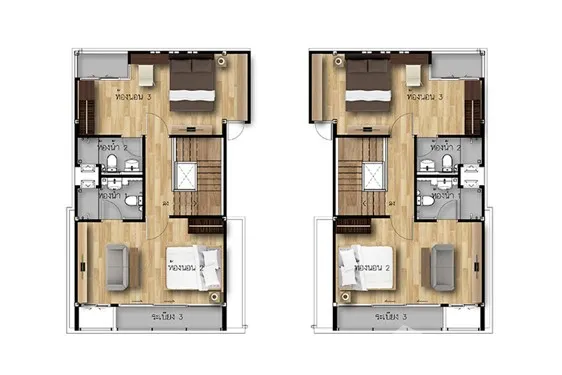 - บ้านแฝดสไตล์โมเดิร์น 3 ชั้น วัสดุพรีเมี่ยมทั้งหลัง