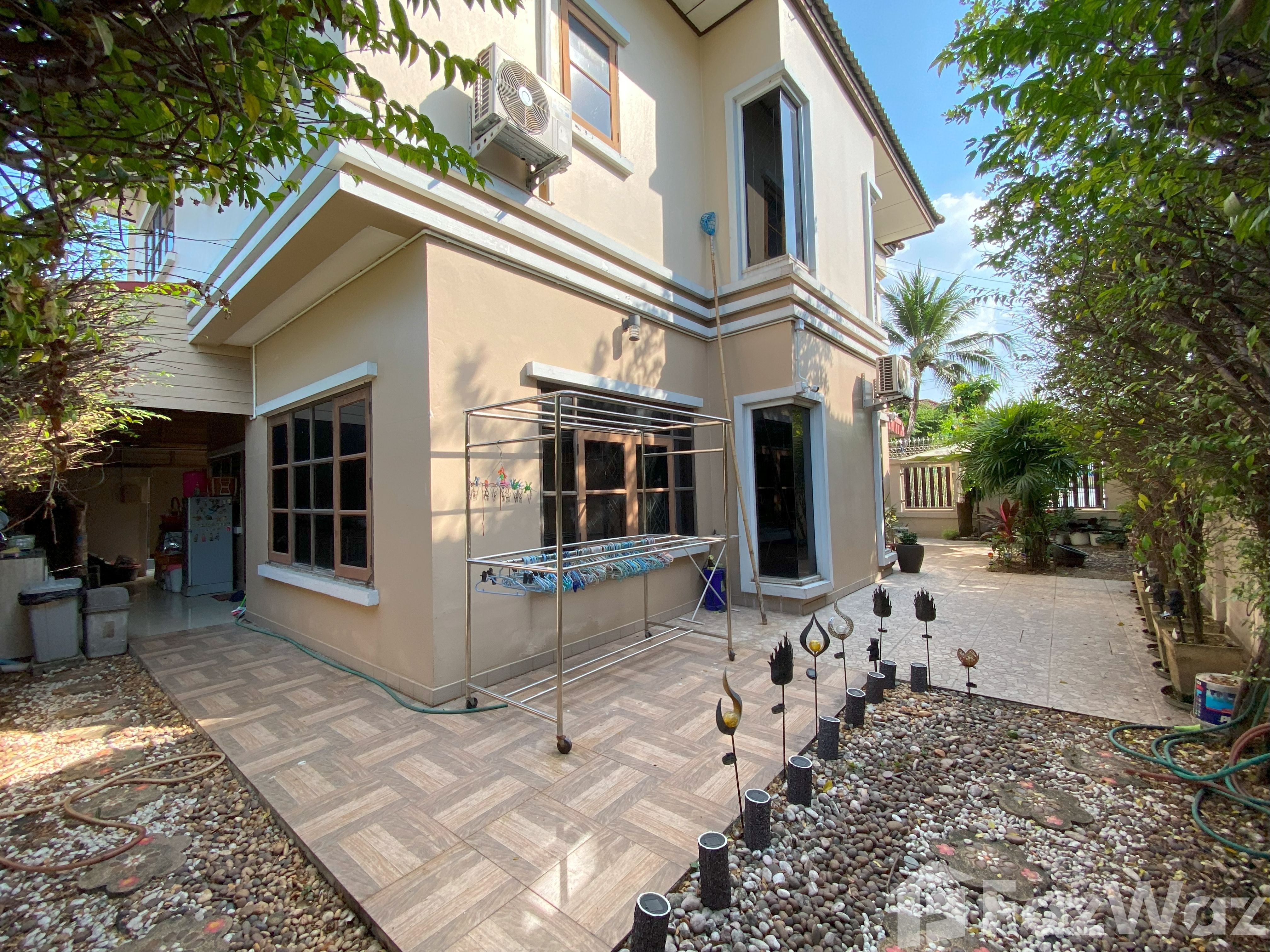 ของแถม : เครื่องปรับอากาศ 4 เครื่อง, ตู้เสื้อผ้า, ชั้นวางโทรทัศน์, เครื่องทำน้ำอุ่น 3 เครื่อง, เครื่องกรองน้ำ, แท็งค์เก็บน้ำ, ปั๊มน้ำ, กล้องวงจรปิดภายในบ้าน 2 ตัว, กล้องวงจรปีดรอบบ้าน 16 ตัว, ประตูบ้านรีโมท, ผ้าม่าน, เหล็กดัด, สะดวกในการเดินทางเพราะมีทางออก 4 ทาง ซอย17 ซอย1 7/3 ซอย17/4 ซอยอุทยาน จุดเด่น - ใกล้ร้านสะดวกซื้อ 7-Eleven 0.35 กม. - ใกล้ตลาด ตลาดนัดอักษะ สาย3 0.5 กม. - ตลาดพุทธ 5.4 กม. ตลาดศาลายา 8 กม. - ใกล้ห้างสรรพสินค้า บุญถาวร 1 กม. โลตัสศาลายา 9.3 กม. แม็คโคร ศาลายา 10กม. เซ็นทรัล ศาลายา 12 กม. เดอะมอลล์ บางแค 13 กม. - ใกล้โรงพยาบาล ศูนย์บริการสาธารณสุข 67 ทวีวัฒนา 1 กม. ศูนย์การแพทย์กาญจนาภิเษก 6 กม. โรงพยาบาลราชพิพฒน์ 6.9 กม. โรงพยาบาลศาลายา 10 กม. โรงพยาบาลธนบุรี 2 13 กม. - ใกล้สถานีตำรวจนครบาลธรรมศาลา 1.3 กม. - ใกล้สำนักงานเขตทวีวัฒนา 1.1 กม. - ใกล้สถานีดับเพลิงและกู้ภัยทวีวัฒนา 1.1 กม. - ใกล้สถานศึกษา, รร.นวมินทราชินูทิศสตรีวิทยา, พุทธมณฑล 0.75 กม. ม.กรุงเทพธนบุรี 1.9 กม.