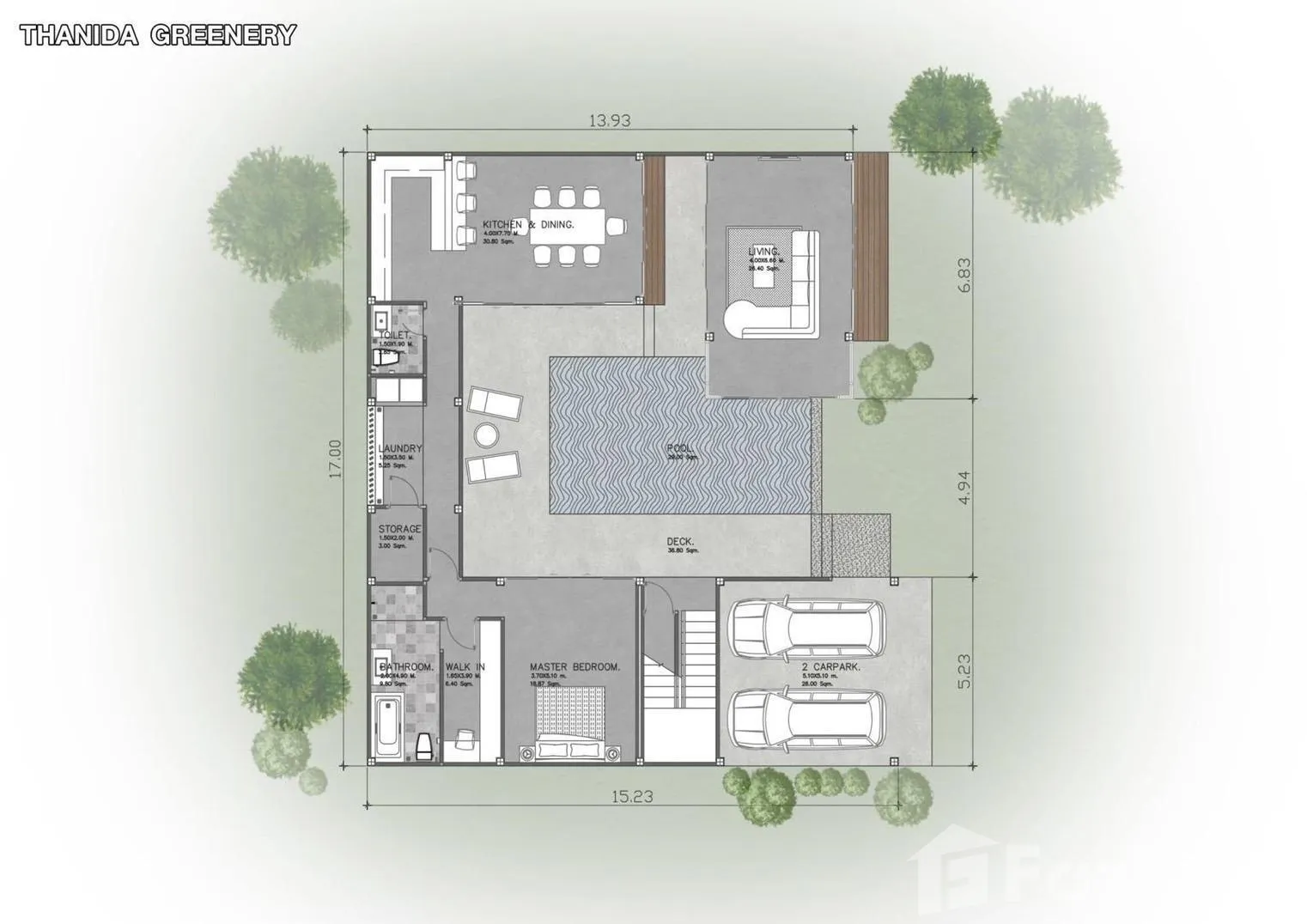 บ้าน 2 ชั้นกว้างขวาง พร้อมสระว่ายน้ำส่วนตัว ในธนิดา กรีนเนอรี่
