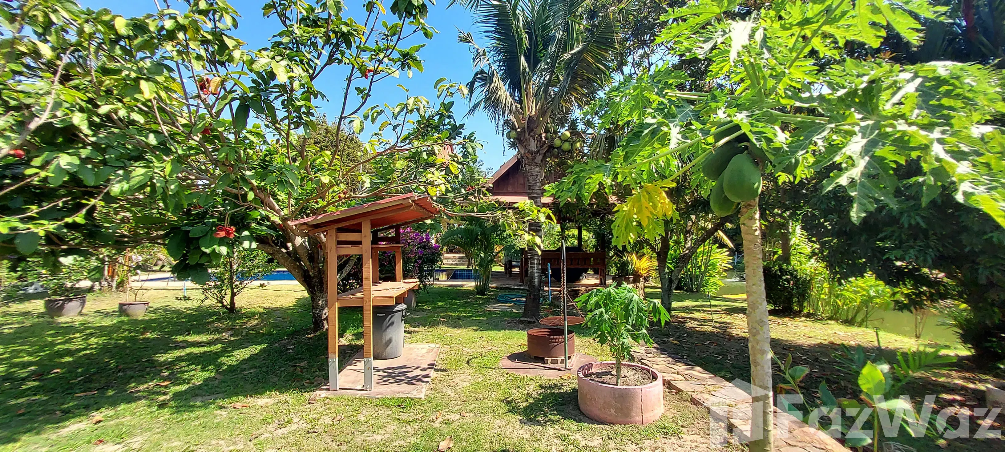 The plot is at the end of a cul-de-sac in the Thap Ma district on the north side of road 36, diagonally opposite the large Central Rayong shopping mall. Despite its proximity to Rayong city, it is quiet and peaceful here, so only the chirping of birds can be heard.