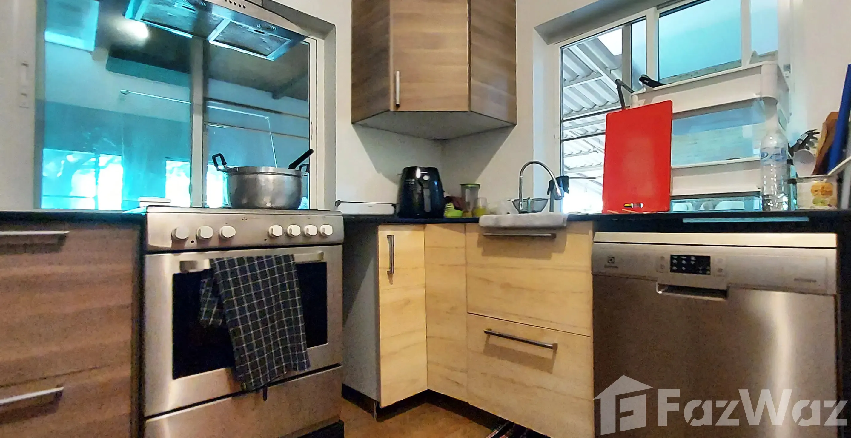 • A 2-storey villa of 160 m2 living space with a large living room on the ground floor connected to a large terrace and with a western kitchen. On the upper floor 2 bedrooms with en suite bathrooms and an office.