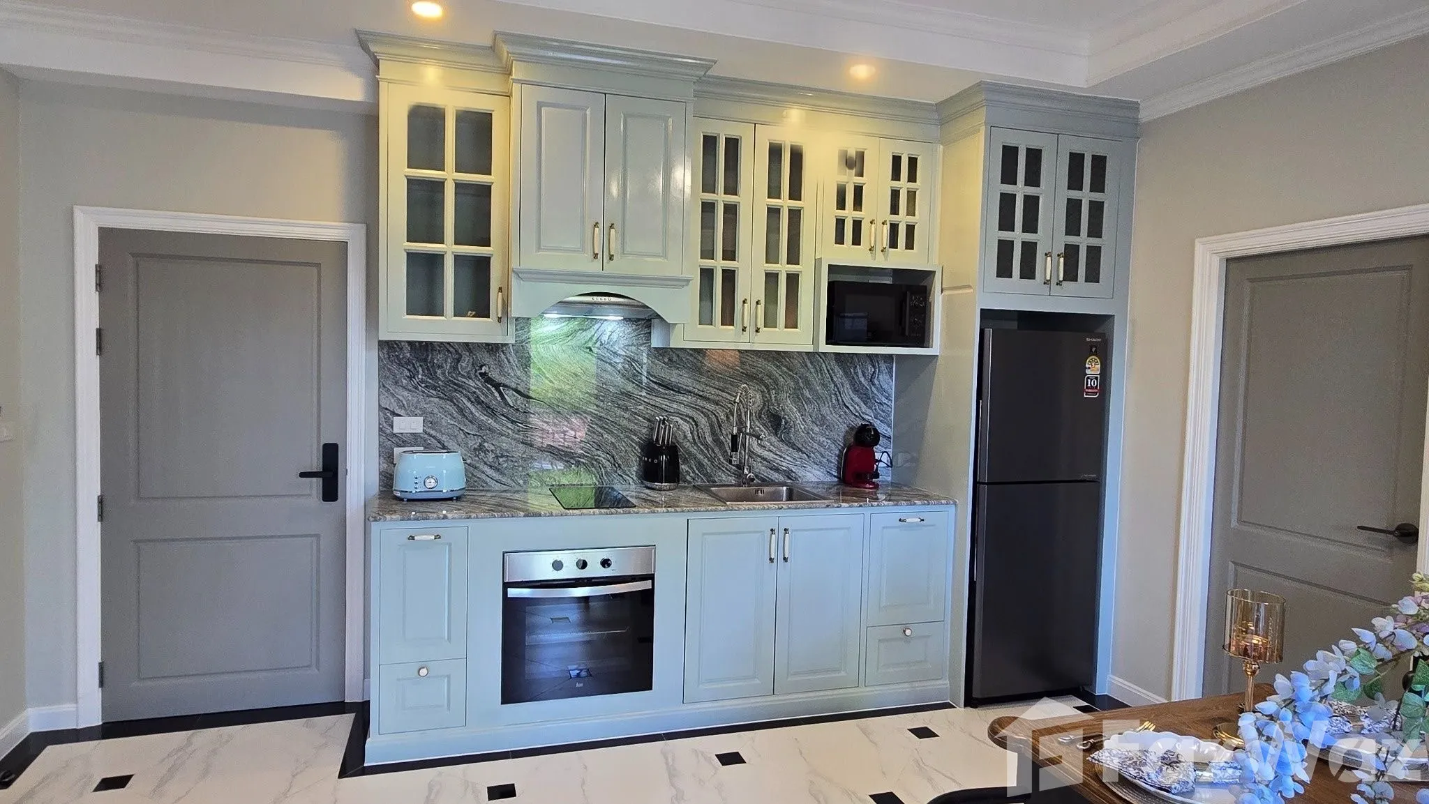 เป็นยูนิตที่ขายพร้อมกับเฟอร์นิเจอร์ครบชุด ที่เรียกได้ว่าเพียงแค่ยกกระเป๋าเสื้อผ้าเข้าไปก็สามารถอยู่อาศัยได้ทันที โดยมักจะมีเฟอร์นิเจอร์ตั้งแต่โซฟา ชั้นวางทีวี ในห้องรับแขก หรืออุปกรณ์เครื่องครัวทั้งหมด รวมไปถึงโต๊ะอาหาร ไล่เรียงไปยังเตียงนอนและตู้เสื้อผ้า ในห้องนอน (รายละเอียดปลีกย่อยอื่นๆ ขึ้นอยู่กับแต่ละยูนิต)