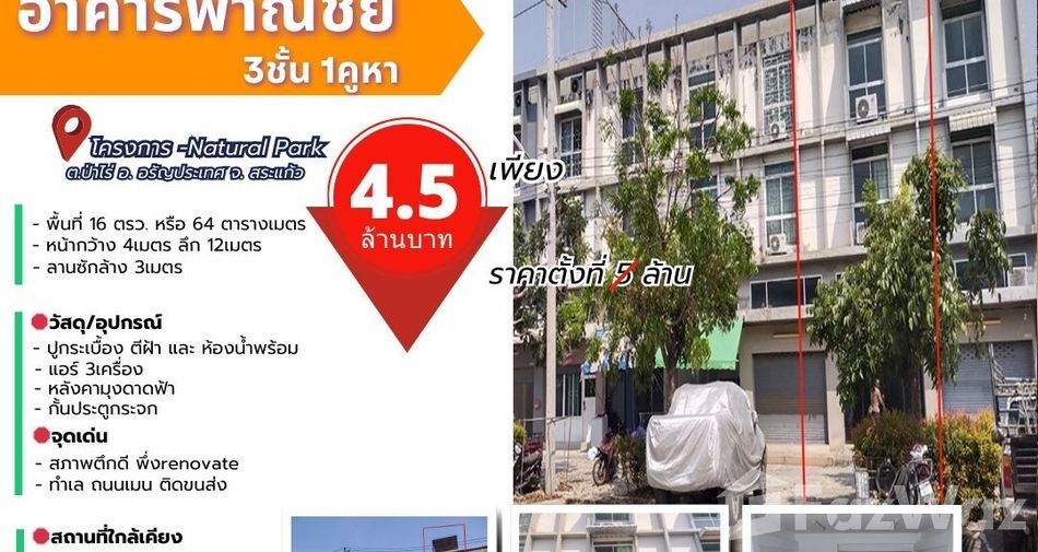 ขายพื้นที่ค้าปลีก 3 ห้องนอน ในทำเล อรัญประเทศ, สระแก้ว