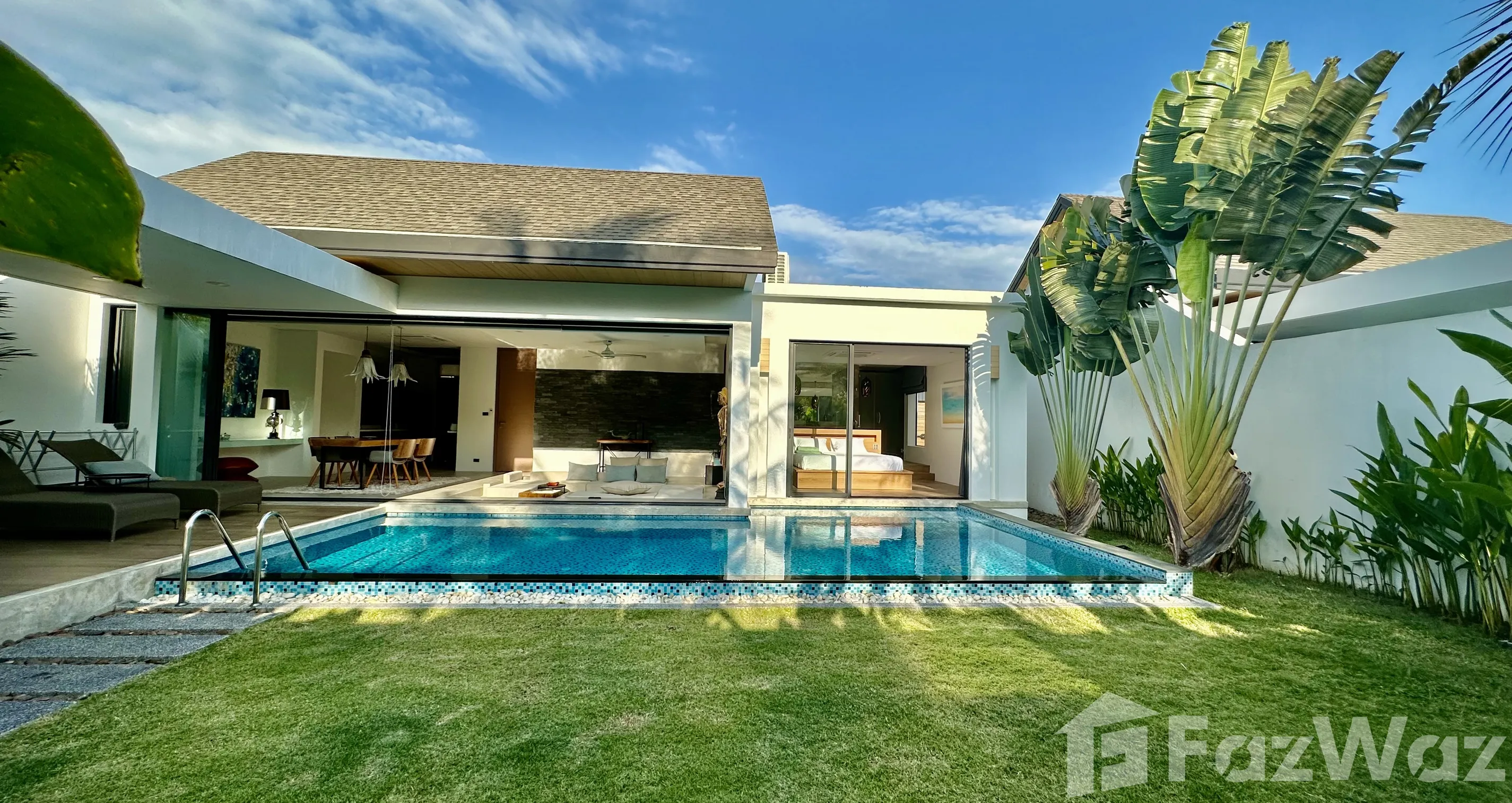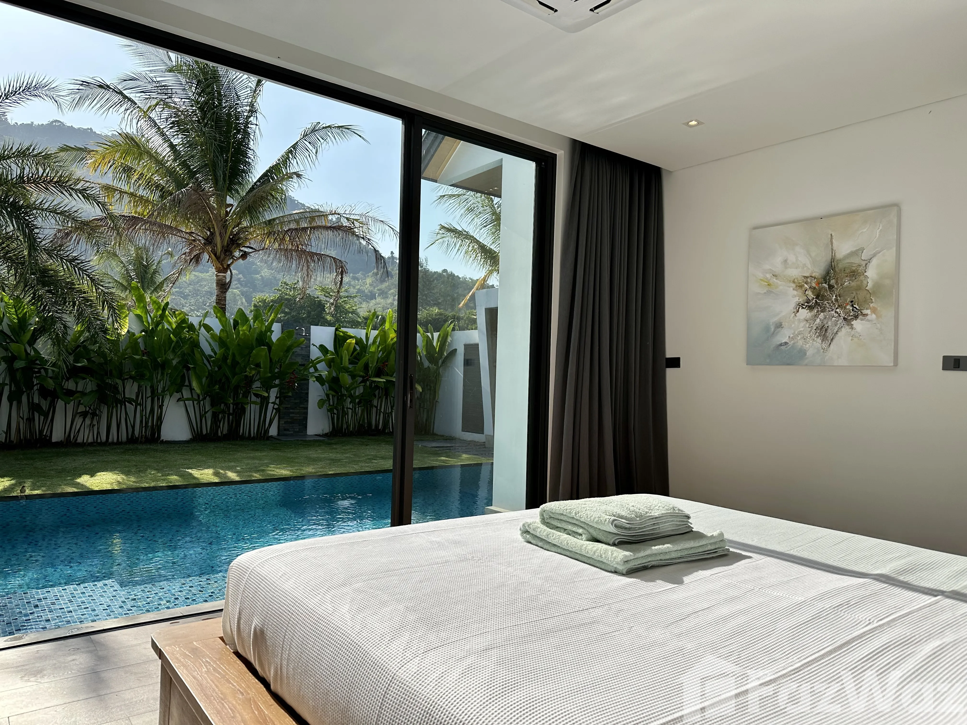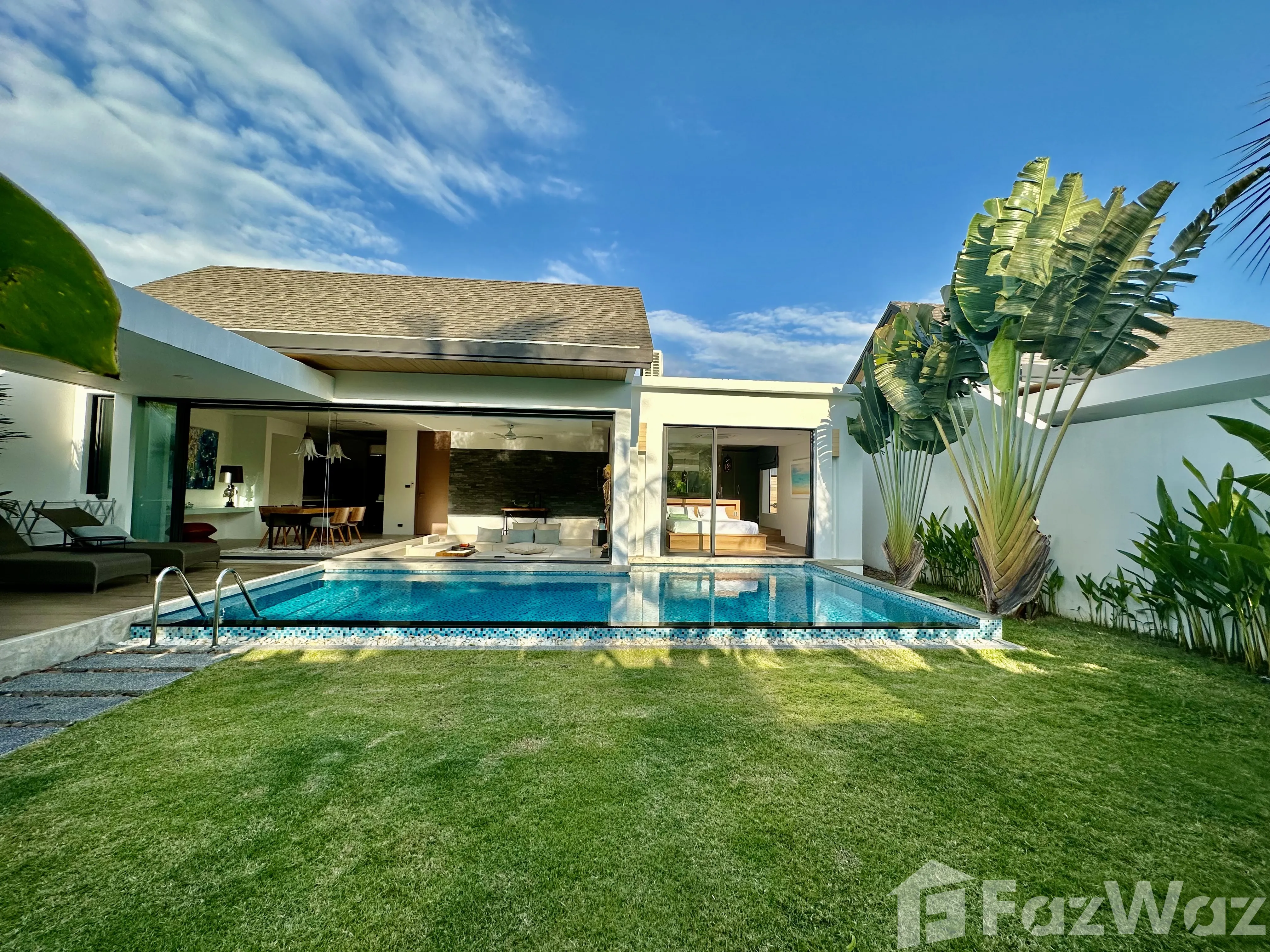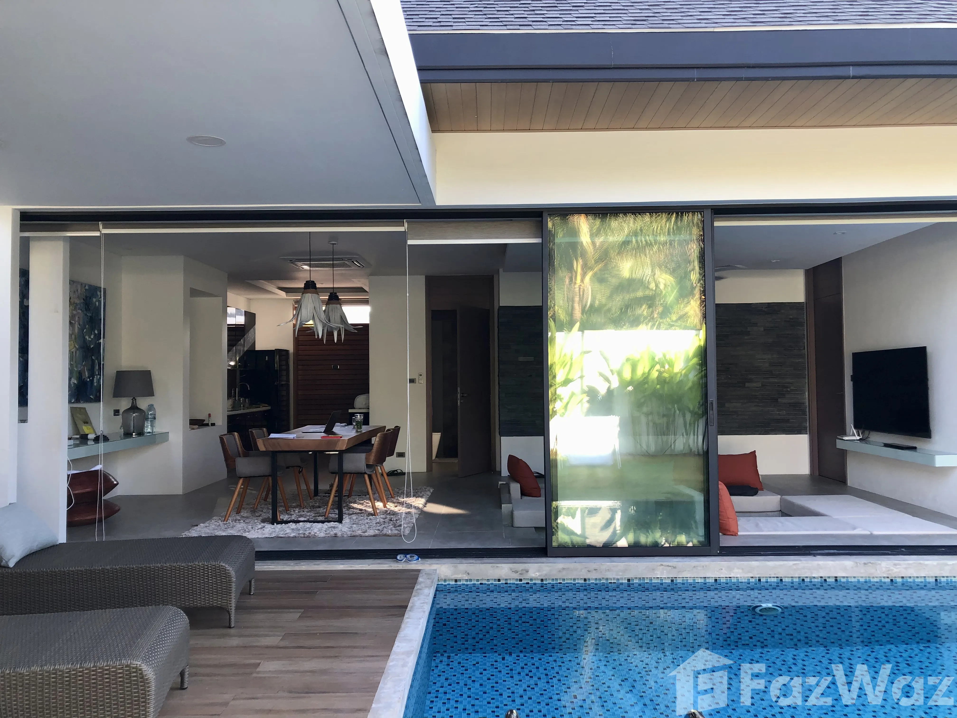 วิลล่าสวยมาก โครงการใหม่ ที่ตั้งอยู่ในทำเลที่แสนจะเงียบสงบ เดินทางง่ายด้วย อยู่ใกล้กับหาดในทอน และสนามบินนานาชาติ ภูเก็ต ก็อยู่ถัดออกไปไม่ไกล บรรยากาศรอบข้างน่าอยู่อาศัย เงียบและเป็นส่วนตัวดีมากครับ ตัววิลล่ามี 2 ห้องนอน มีชุดเฟอร์นิเจอร์ตกแต่งครบครัน ดีไซน์สวยและทันสมัยดี ชอบที่การทำห้องรับแขกให้มีเลเยอร์ครับ ภายในวิลล่าก็มีสระว่ายน้ำด้วยครับ ชิลล์มาก ๆ เลย แถมเพื่อนบ้านก็อาศัยกันเป็นระเบียบ และมีระบบความปลอดภัยสูง แต่เดินทางไปไหนกลางคืนค่อนข้างน่ากลัวหน่อยครับ โครงการตั้งอยู่ในซอยที่ค่อนข้างลึกเลยทีเดียว ผมเกือบหาทางออกไปเจอครับ ฮ่า ๆ