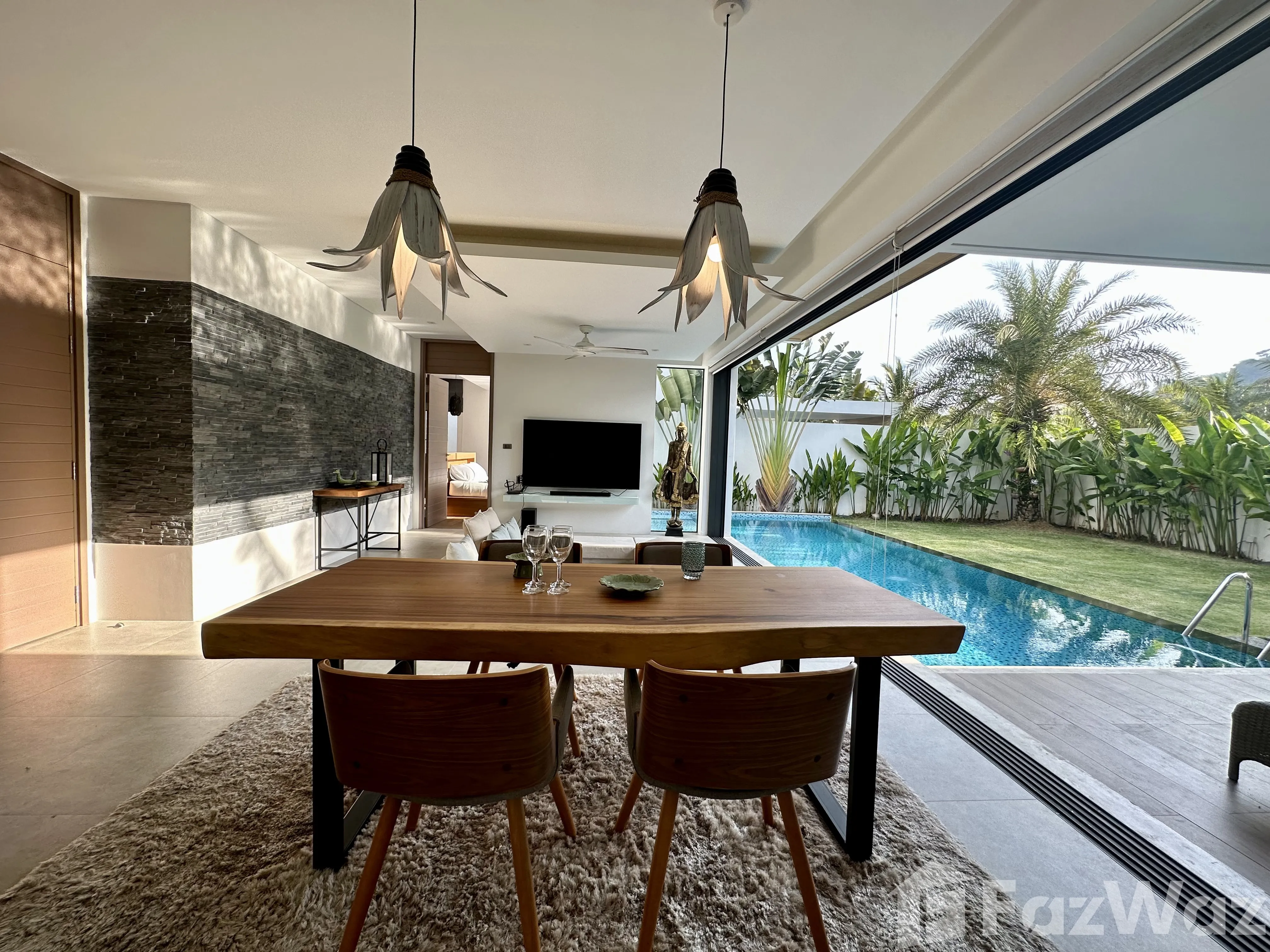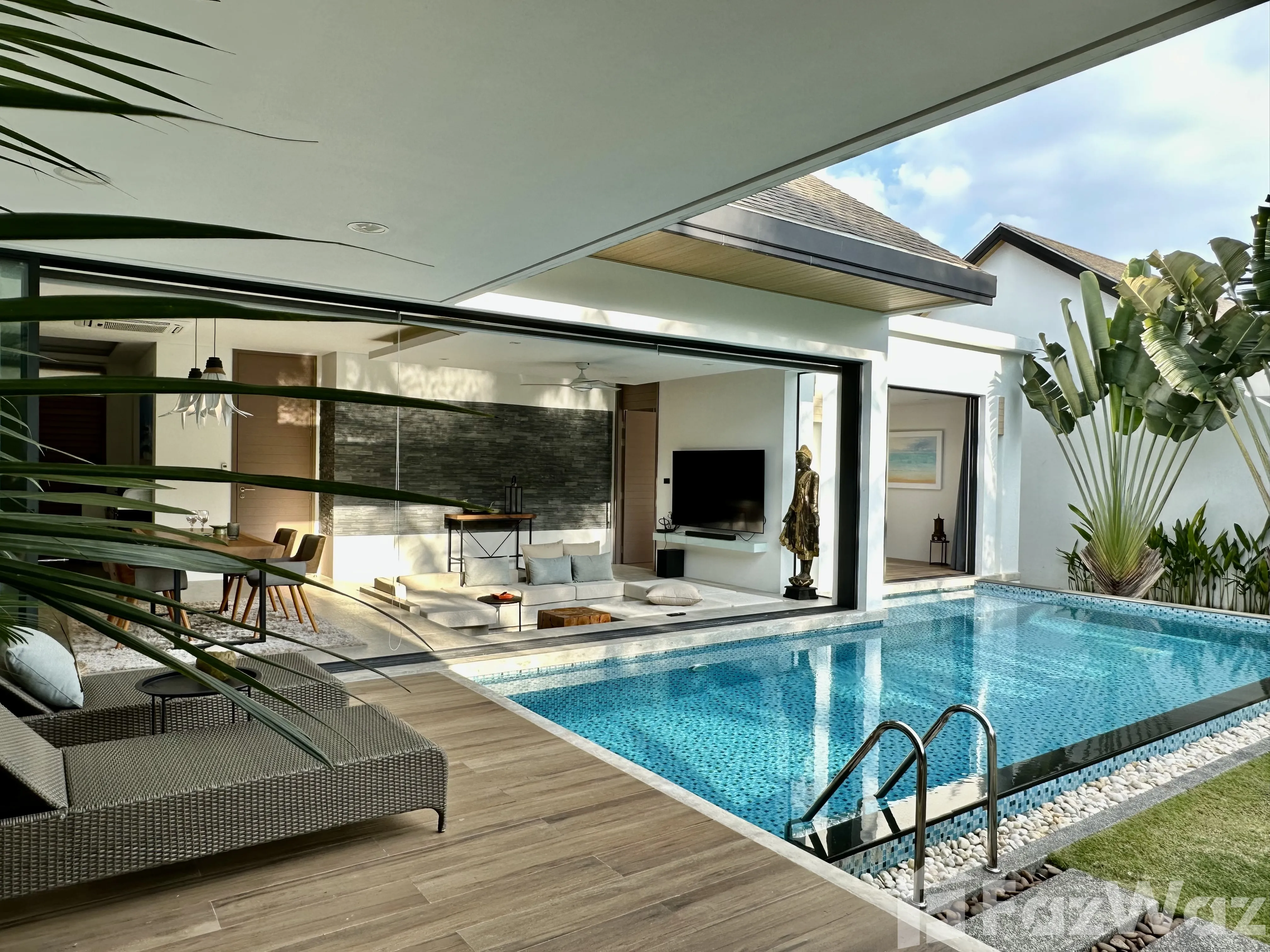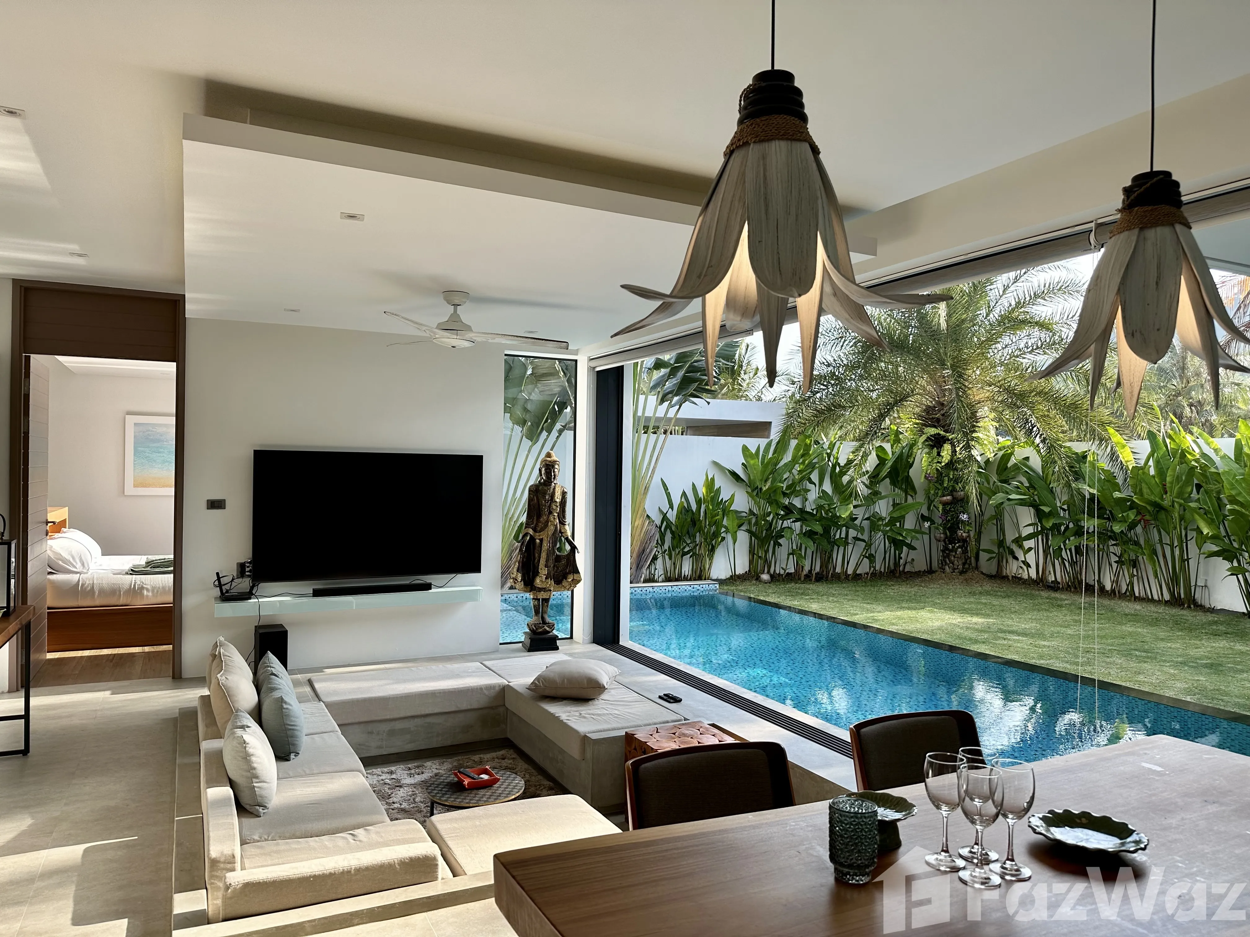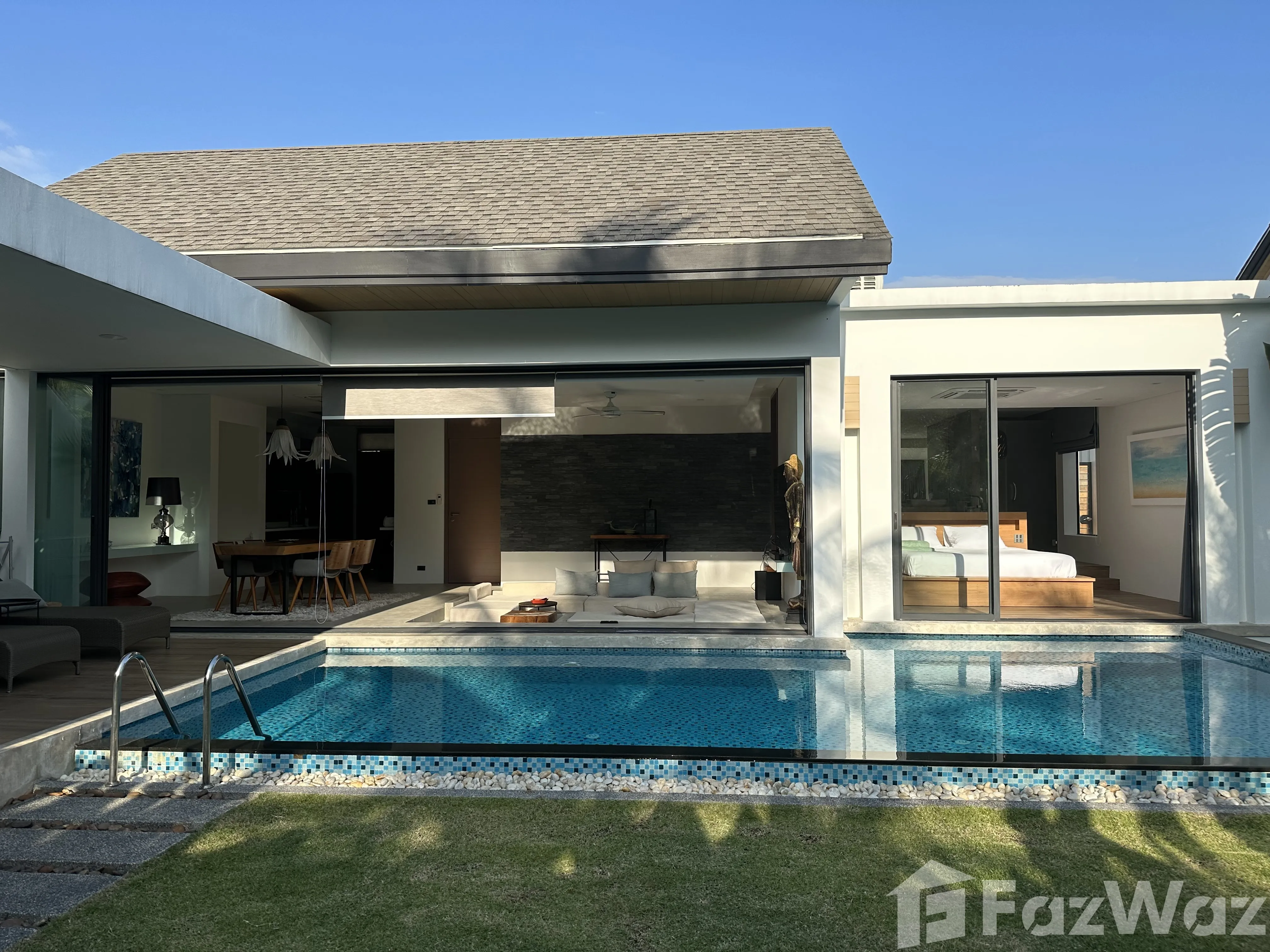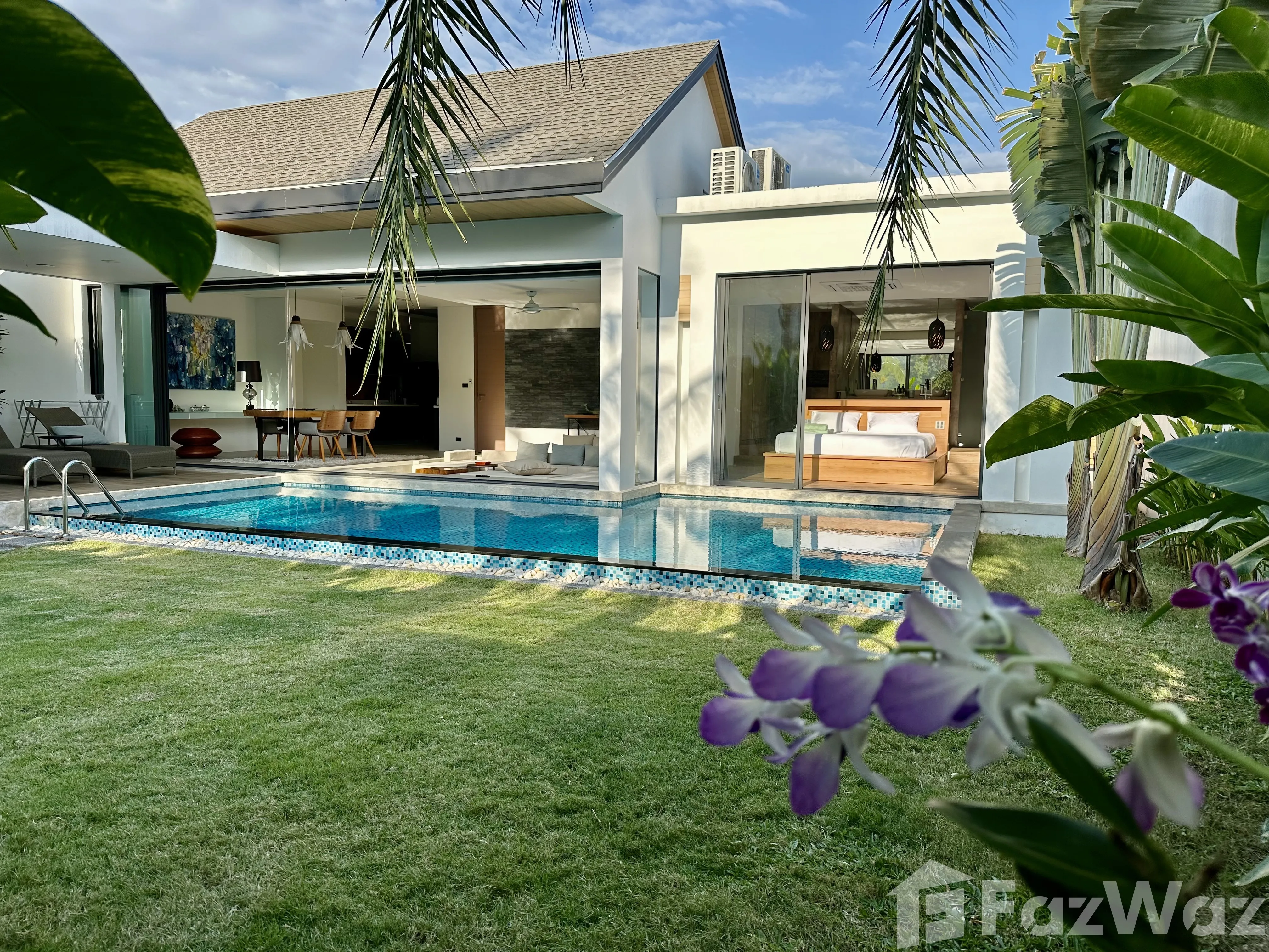 วิลล่าสวยมาก โครงการใหม่ ที่ตั้งอยู่ในทำเลที่แสนจะเงียบสงบ เดินทางง่ายด้วย อยู่ใกล้กับหาดในทอน และสนามบินนานาชาติ ภูเก็ต ก็อยู่ถัดออกไปไม่ไกล บรรยากาศรอบข้างน่าอยู่อาศัย เงียบและเป็นส่วนตัวดีมากครับ ตัววิลล่ามี 2 ห้องนอน มีชุดเฟอร์นิเจอร์ตกแต่งครบครัน ดีไซน์สวยและทันสมัยดี ชอบที่การทำห้องรับแขกให้มีเลเยอร์ครับ ภายในวิลล่าก็มีสระว่ายน้ำด้วยครับ ชิลล์มาก ๆ เลย แถมเพื่อนบ้านก็อาศัยกันเป็นระเบียบ และมีระบบความปลอดภัยสูง แต่เดินทางไปไหนกลางคืนค่อนข้างน่ากลัวหน่อยครับ โครงการตั้งอยู่ในซอยที่ค่อนข้างลึกเลยทีเดียว ผมเกือบหาทางออกไปเจอครับ ฮ่า ๆ