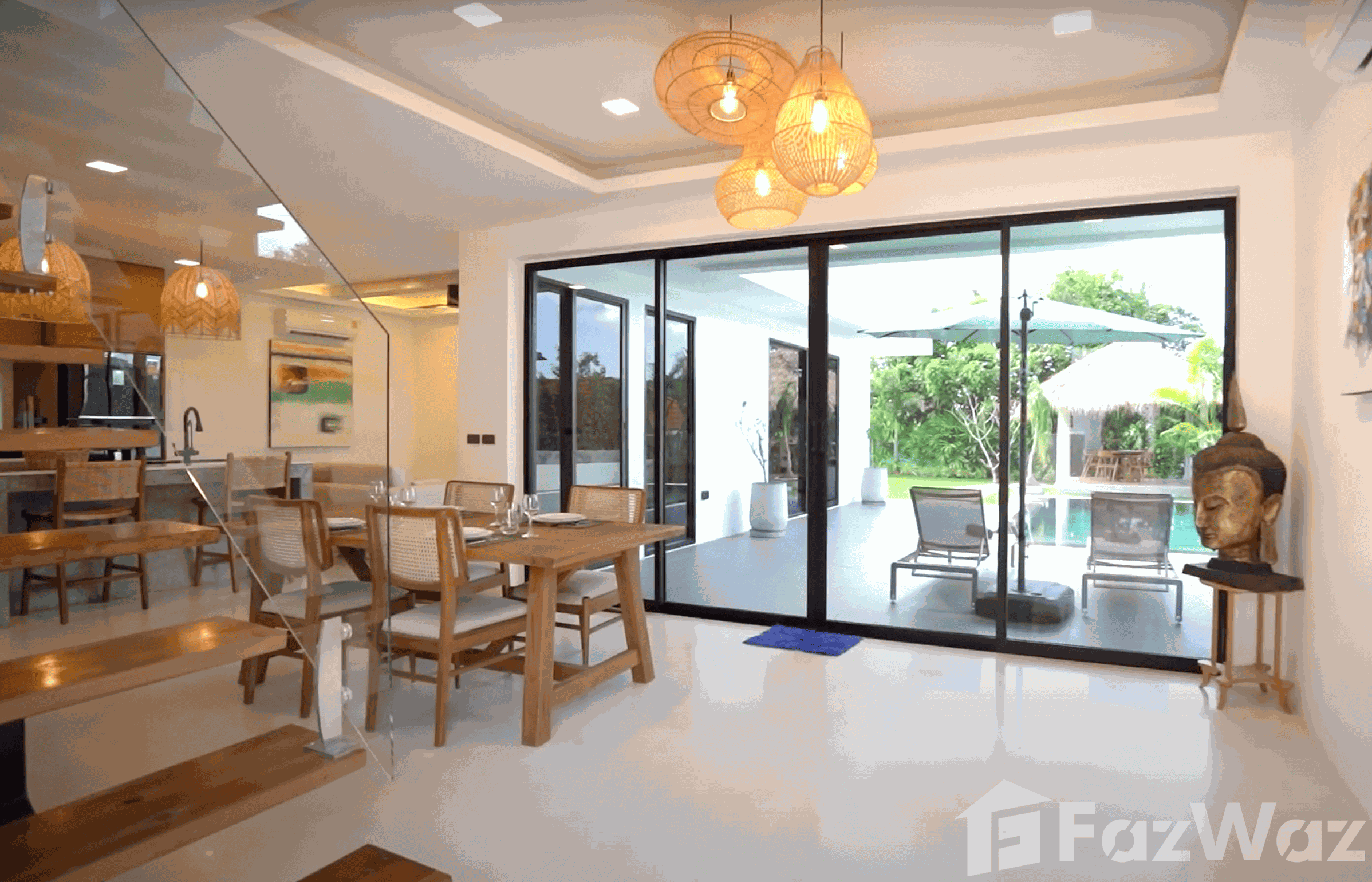 Your Private Balinese-Inspired Retreat with Stunning Sunset Views.This property is ideal as either a holiday home or vacation rental, allowing a modern yet laid back feeling throughout. Floor-to-ceiling glass doors & windows allow every room of the residences to welcome natural light and extend onto the back living spaces and sunset sea view. The villa has a private garden and salt-water swimming pool rendered in ‘green sukabumi’ tiles from Java, Indonesia. Space! the villa offers an abundance of lazy & liveable space within its own private sanctuary ~ including an oversized outdoor terrace & rooftop retreat designed for entertaining, having an afternoon nap or simply reading a book in the shade. สวรรค์ส่วนตัวสไตล์บาหลีของคุณ พร้อมวิวพระอาทิตย์ตกสุดตระการตา บ้านหลังนี้เหมาะอย่างยิ่งทั้งสำหรับใช้เป็นบ้านพักตากอากาศส่วนตัวหรือปล่อยเช่าเพื่อการพักผ่อน มอบความรู้สึกทันสมัยแต่ผ่อนคลายได้อย่างลงตัวตลอดทุกพื้นที่ ด้วยประตูกระจกและหน้าต่างสูงจากพื้นจรดเพดาน ทุกห้องของตัวบ้านจึงเปิดรับแสงธรรมชาติได้อย่างเต็มที่ และเชื่อมต่อสู่พื้นที่พักผ่อนด้านหลัง พร้อมวิวทะเลและพระอาทิตย์ตกที่งดงาม ตัววิลล่ามีสวนส่วนตัวและสระว่ายน้ำระบบเกลือ ปูด้วยกระเบื้องหิน “Green Sukabumi” จากเกาะชวา ประเทศอินโดนีเซีย ให้บรรยากาศที่เป็นธรรมชาติและมีเอกลักษณ์ พื้นที่ใช้สอยภายในวิลล่ากว้างขวางและน่าอยู่ – ออกแบบให้เป็นพื้นที่พักผ่อนส่วนตัวอย่างแท้จริง พร้อมระเบียงกลางแจ้งขนาดใหญ่และมุมดาดฟ้าสำหรับนั่งเล่น สังสรรค์ งีบหลับยามบ่าย หรืออ่านหนังสือท่ามกลางร่มเงาอย่างสบายใจ