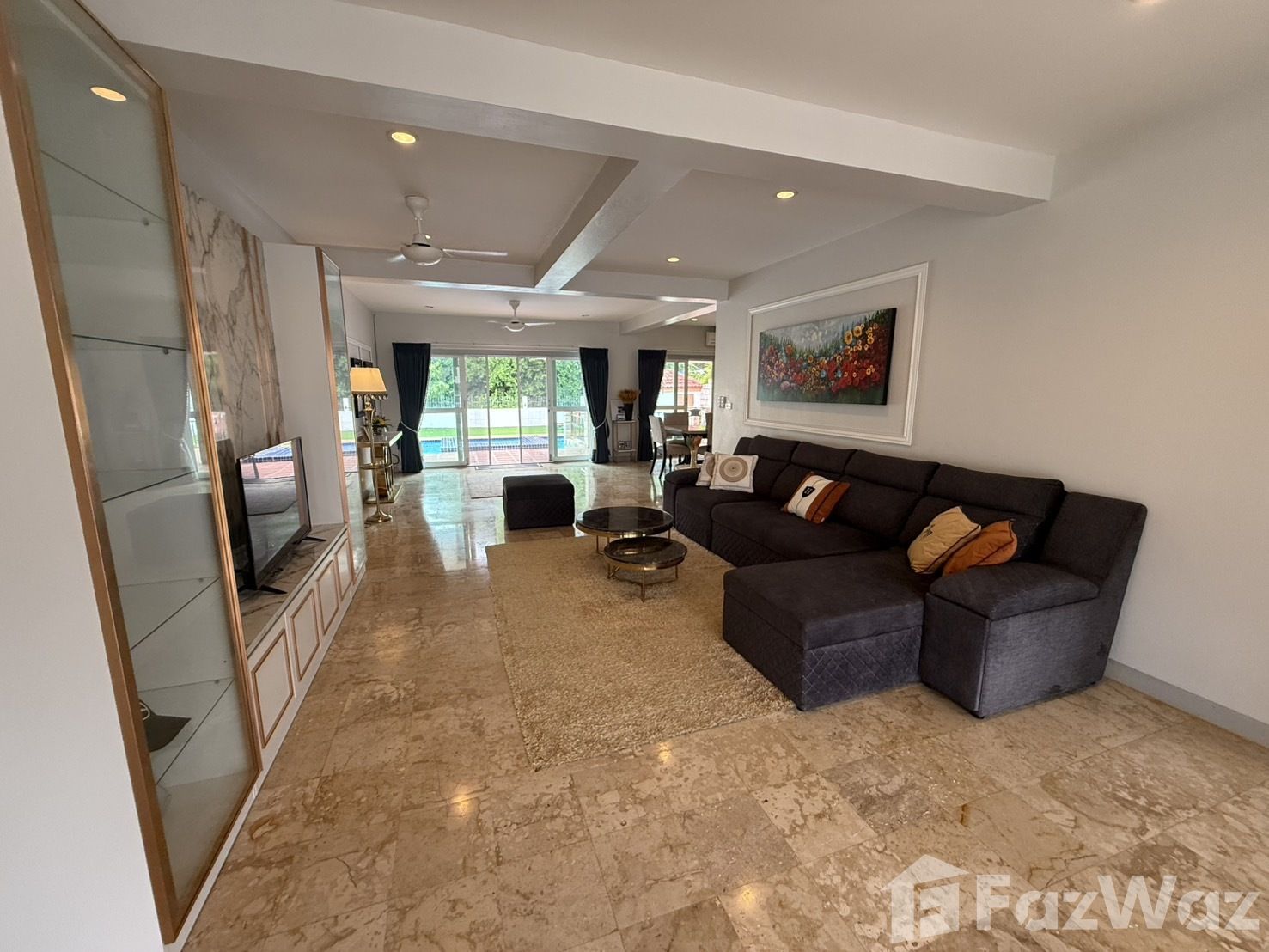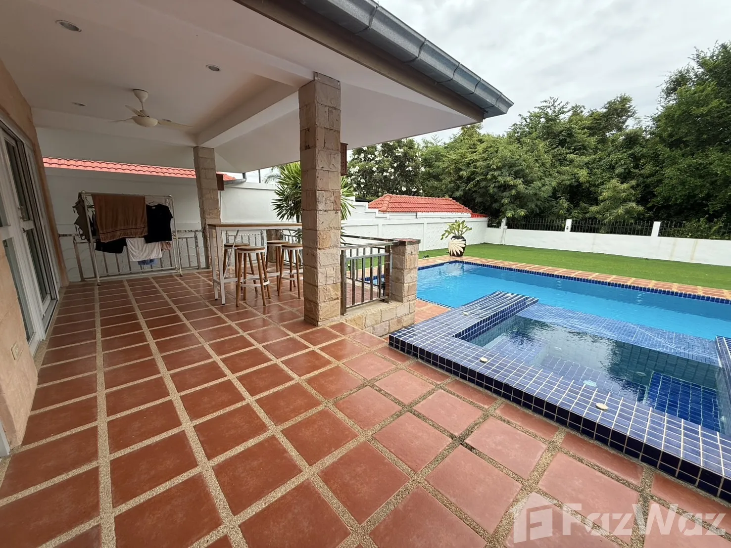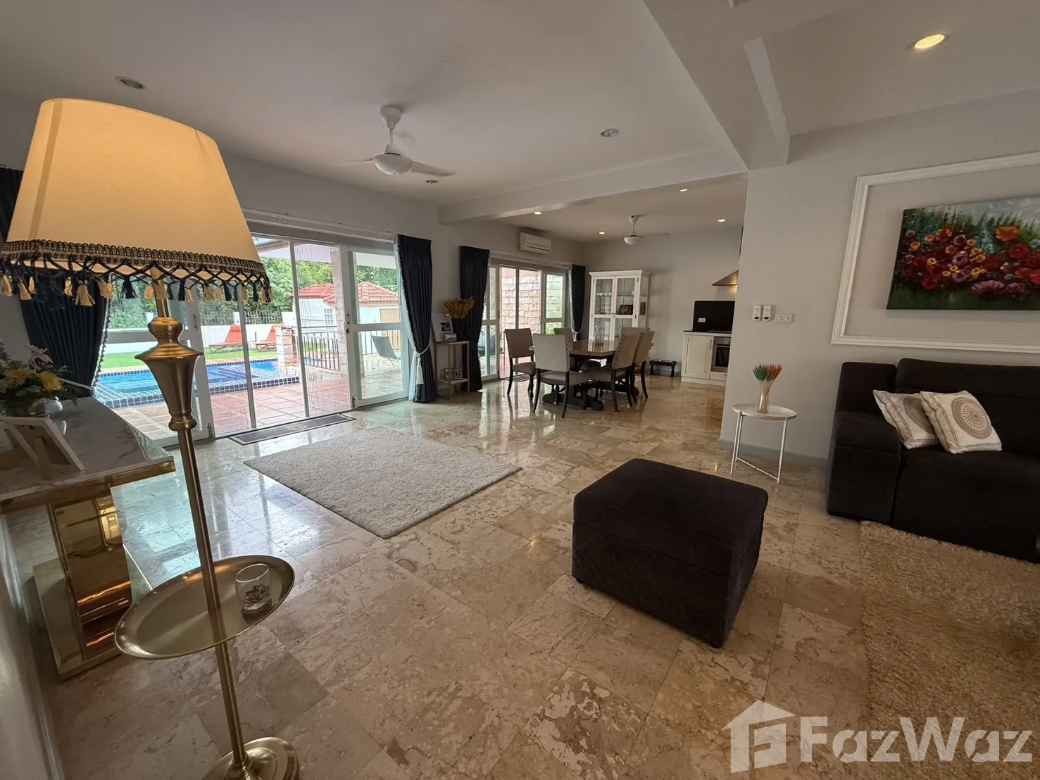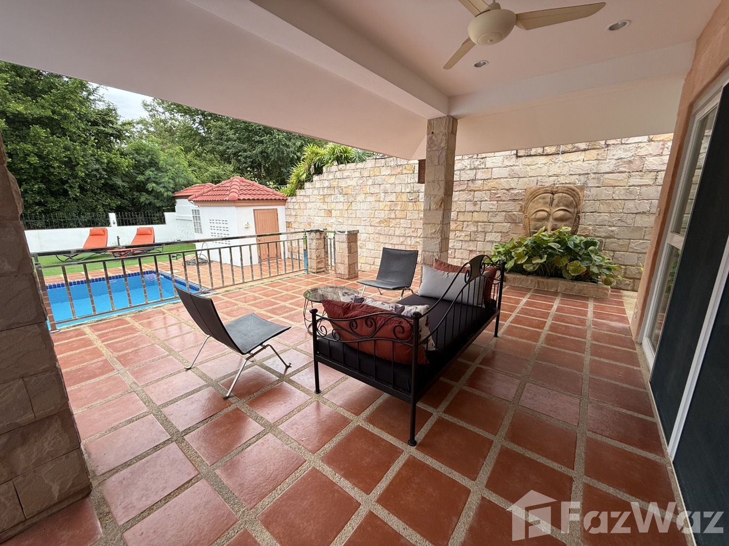 บรรยากาศภายในหมู่บ้านเงียบสงบและน่าอยู่อาศัยมาก เพื่อนบ้านน่ารัก และรปภ.ที่นี่ยังคอยตรวจตราบ่อย ๆ มีความปลอดภัยดีเยี่ยม บ้านมี 4 ห้องนอน ภายในกว้างขวาง ตกแต่งด้วยศิลปะแนวไทย เฟอร์นิเจอร์ที่ใช้ส่วนใหญ่ทำมาจากไม้ ดูแข็งแรงดี มีสระว่ายน้ำภายในบ้านและสวนหย่อม พร้อมขอบรั้วที่มิดชิดครับ