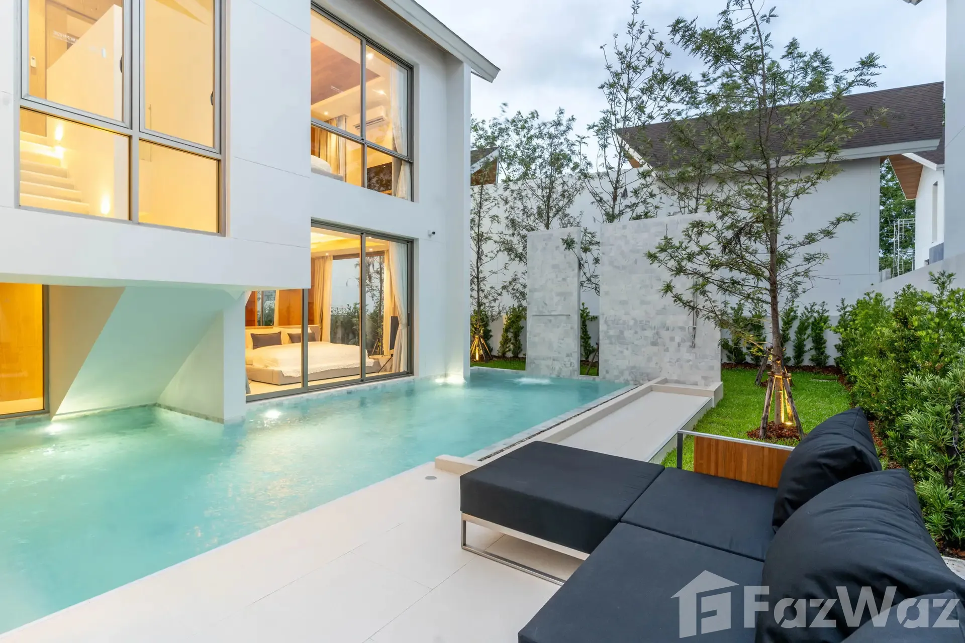 โครงการนี้เป็นโครงการใหม่จาก วัลญา วิลล่า ครับ จากที่ผมได้เยี่ยมชมเว็บไซต์ของโครงการแล้วก็บอกได้เลยว่าคอนเซ็ปต์ดีมาก ที่ออกแบบวิลล่าในสไตล์มินิมอลสมัยใหม่ผสมผสานไทยร่วมสมัย ดูสวยงามแปลกใหม่มากครับ ในส่วนของพื้นที่ใช้สอยก็จัดสรรมาให้ค่อนข้างกว้างมากทั้งครอบครัวอาศัยอยู่ได้สบาย ๆ พื้นที่ใช้สอย 377 ตารางเมตร ฟังก์ชัน 3 ห้องนอน 3 ห้องน้ำ และสระว่ายน้ำ โครงการตั้งอยู่ในซอยค่อนข้างลึก บรรยากาศค่อนข้างเงียบสงบและใกล้ชิดธรรมชาติ แต่ในละแวกใกล้เคียงก็มีแหล่งอำนวยความสะดวกครบครัน ใกล้ ๆ กันก็มีสวนน้ำบลูทรีภูเก็ตห่างออกไป 2 กิโลเมตรเองครับ