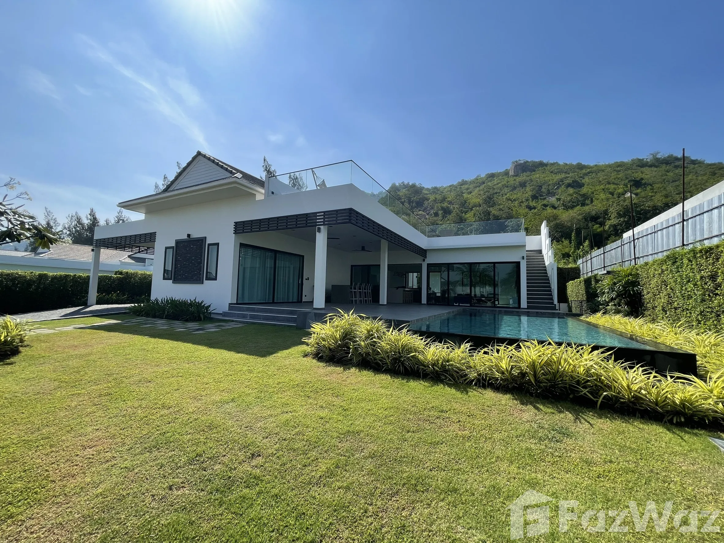 วิลล่าที่นี่ทุกหลังจะมี 3 ห้องนอน และมีสระว่ายน้ำขนาดใหญ่ การออกแบบหรูหรา ให้เฟอร์นิเจอร์มาครบครัน ฉันและครอบครัวชอบที่นี่เพราะเราได้ทำกิจกรรมวันหยุดด้วยกันมากมาย แถมการเดินทางก็ไม่ไกลจากหาดหัวหิน ขับรถออกไปเพียง 5-10 นาทีเท่านั้น รอบ ๆ หมู่บ้านมีพื้นที่ส่วนกลางที่สะอาด ติดตั้งกล้อง CCTV รอบ ๆ โครงการ รวมถึงมีพนักงานรักษาความปลอดภัยตลอด 24 ชั่วโมง รับประกันความปลอดภัยสุด ๆ เป็นวิลล่าที่เหมาะกับครอบครัวค่ะ