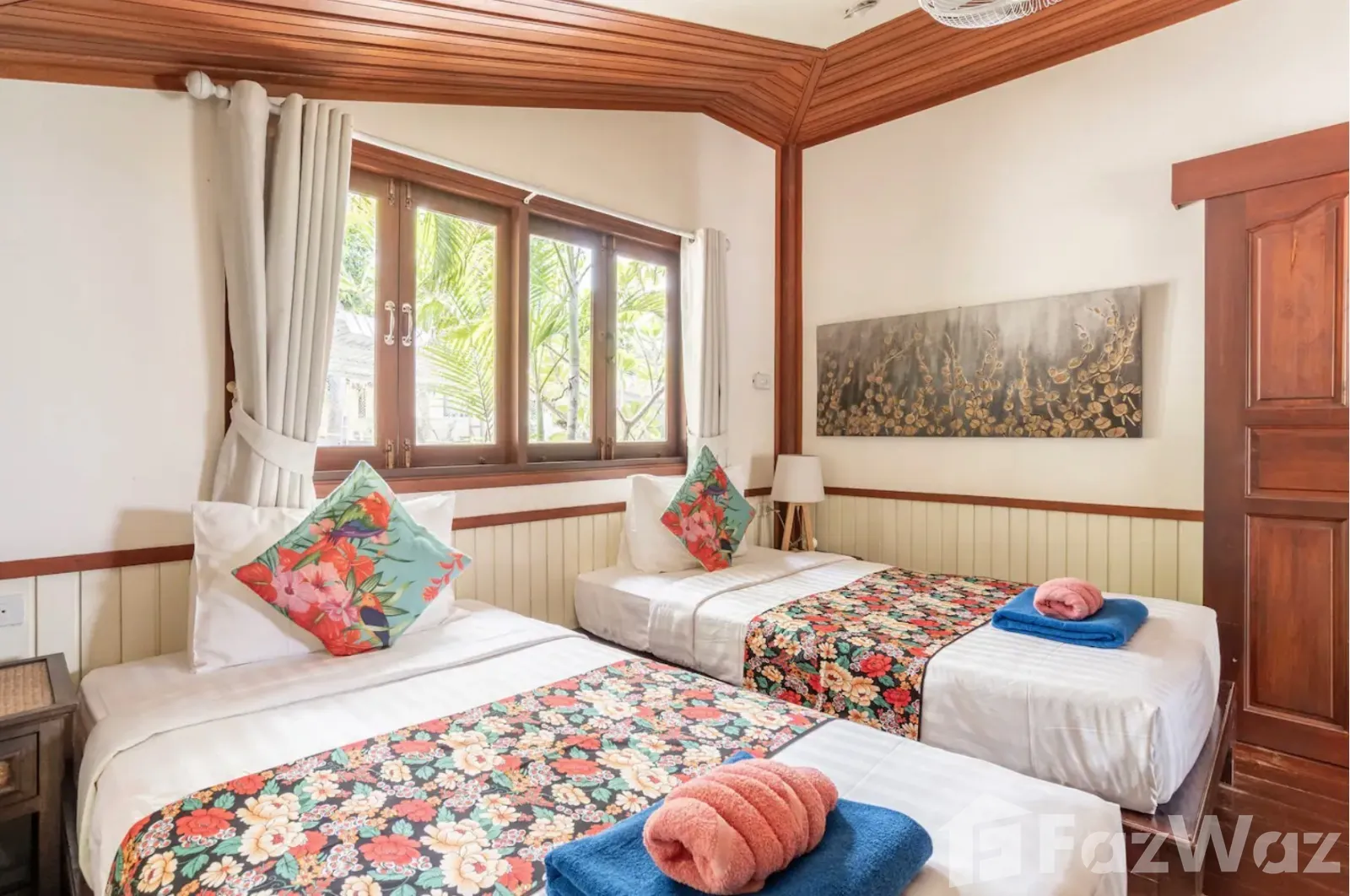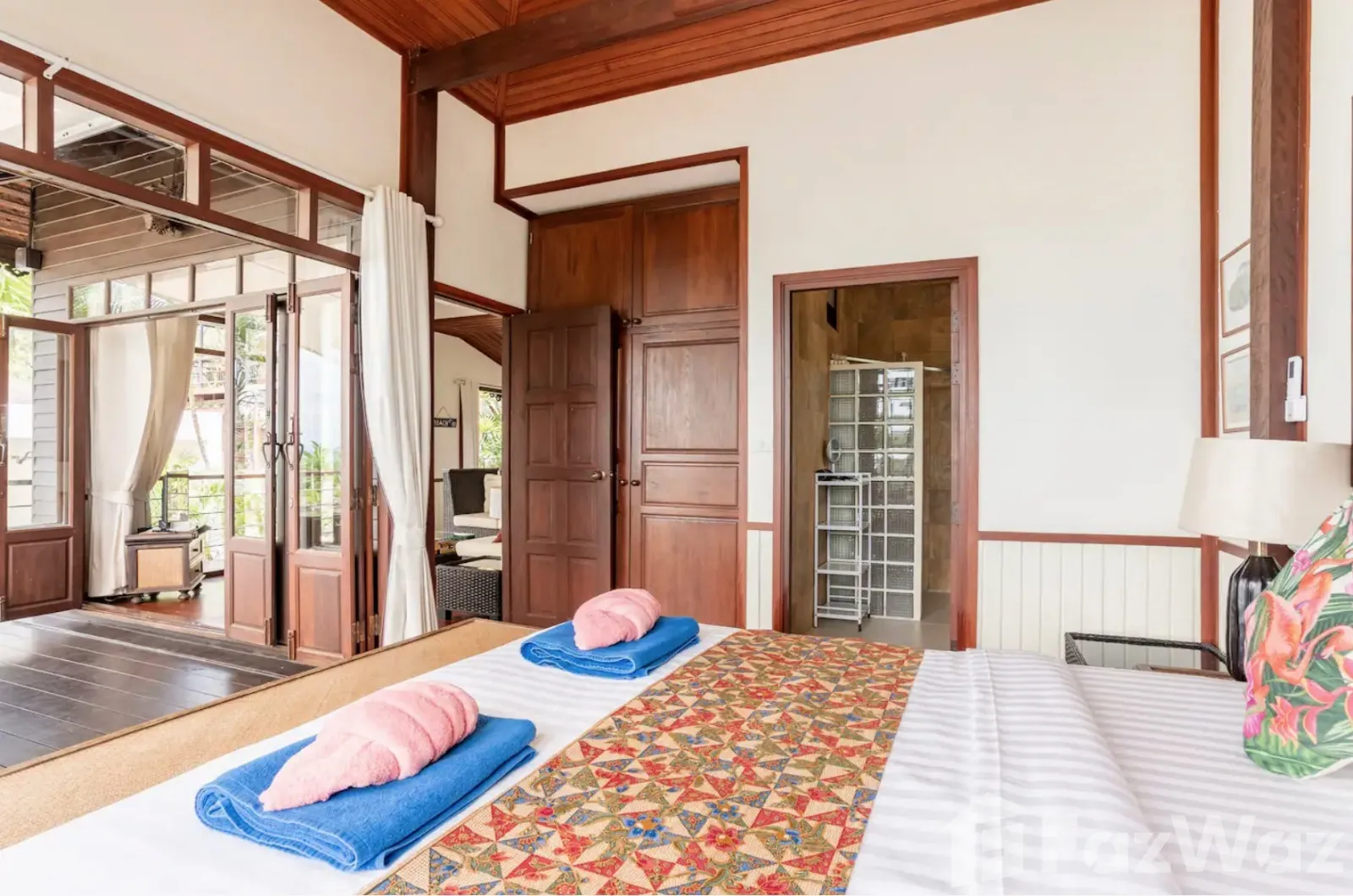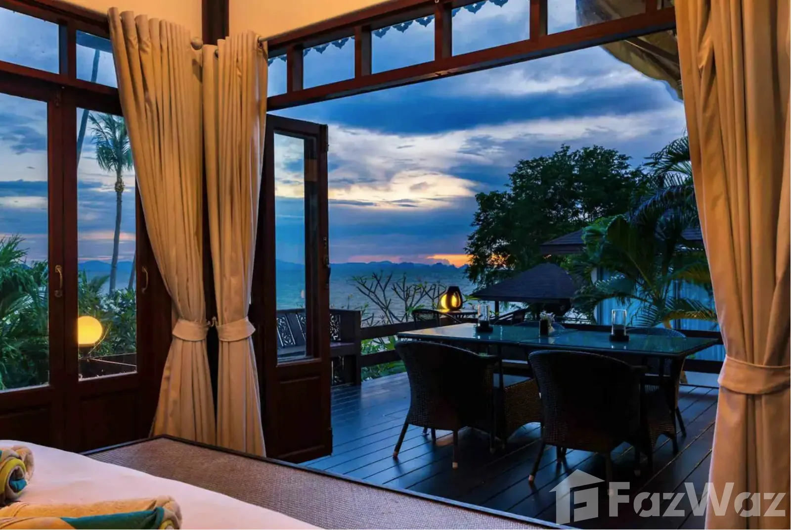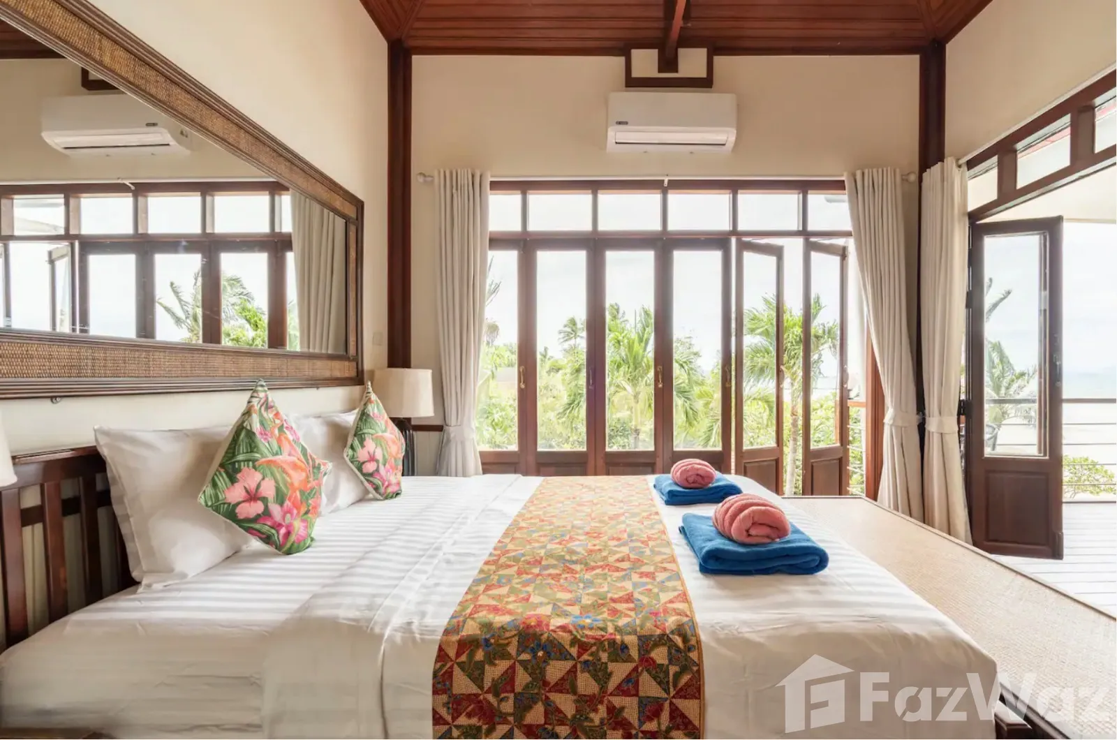 ที่พักติดหาด ในสไตล์ไทย ๆ ทั้งการออกแบบวิลล่าและการตกแต่ง เน้นการใช้วัสดุจากไม้ ให้กลิ่นอายที่แสดงถึงความเป็นไทยมาก ๆ บรรยากาศดีและเป็นส่วนตัว เหมาะกับการพักผ่อนกับครอบครัวในวันที่พิเศษ เพราะมีห้องถึง 3 ห้องนอน ภายในกว้างขวาง มีสระว่ายน้ำส่วนตัวและพื้นที่พักผ่อนริมสระ ชิลล์มาก ๆ และห่างจากท่าเรือหน้าทอนเพียง 4 กิโลเมตรเท่านั้