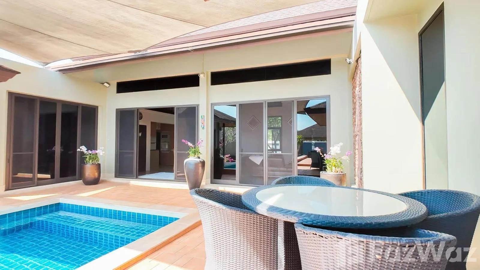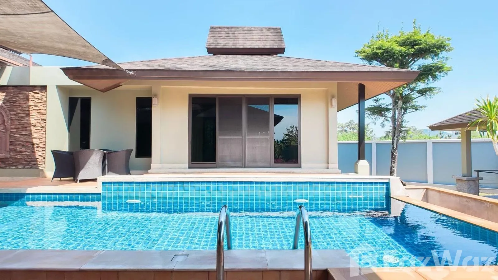 สระว่ายน้ำส่วนตัวสระว่ายน้ำส่วนตัว เข้าถึงสระส่วนกลางได้เข้าถึงสระส่วนกลางได้ เข้าถึงสวนส่วนกลางได้เข้าถึงสวนส่วนกลางได้ ชานบ้านชานบ้าน ที่จอดรถที่จอดรถ