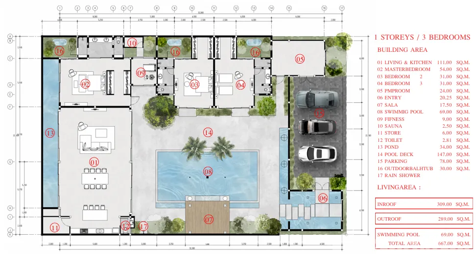 อสังหาริมทรัพย์นี้เป็น วิลล่า สำหรับขาย ขนาด 3 ห้องนอน มีพื้นที่ใช้สอย 309 ตรม. อยู่ในทำเล บ่อผุด, สุราษฎร์ธานี และสร้างเสร็จแล้วเมื่อ ม.ค. 2569 ซึ่งคุณสามารถซื้อ วิลล่า นี้ได้ที่ราคา ฿29,500,000 (฿95,469/ตรม.)