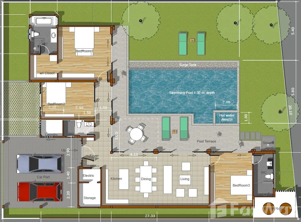 ขนาดสระว่ายน้ำ 10 x 5 mt