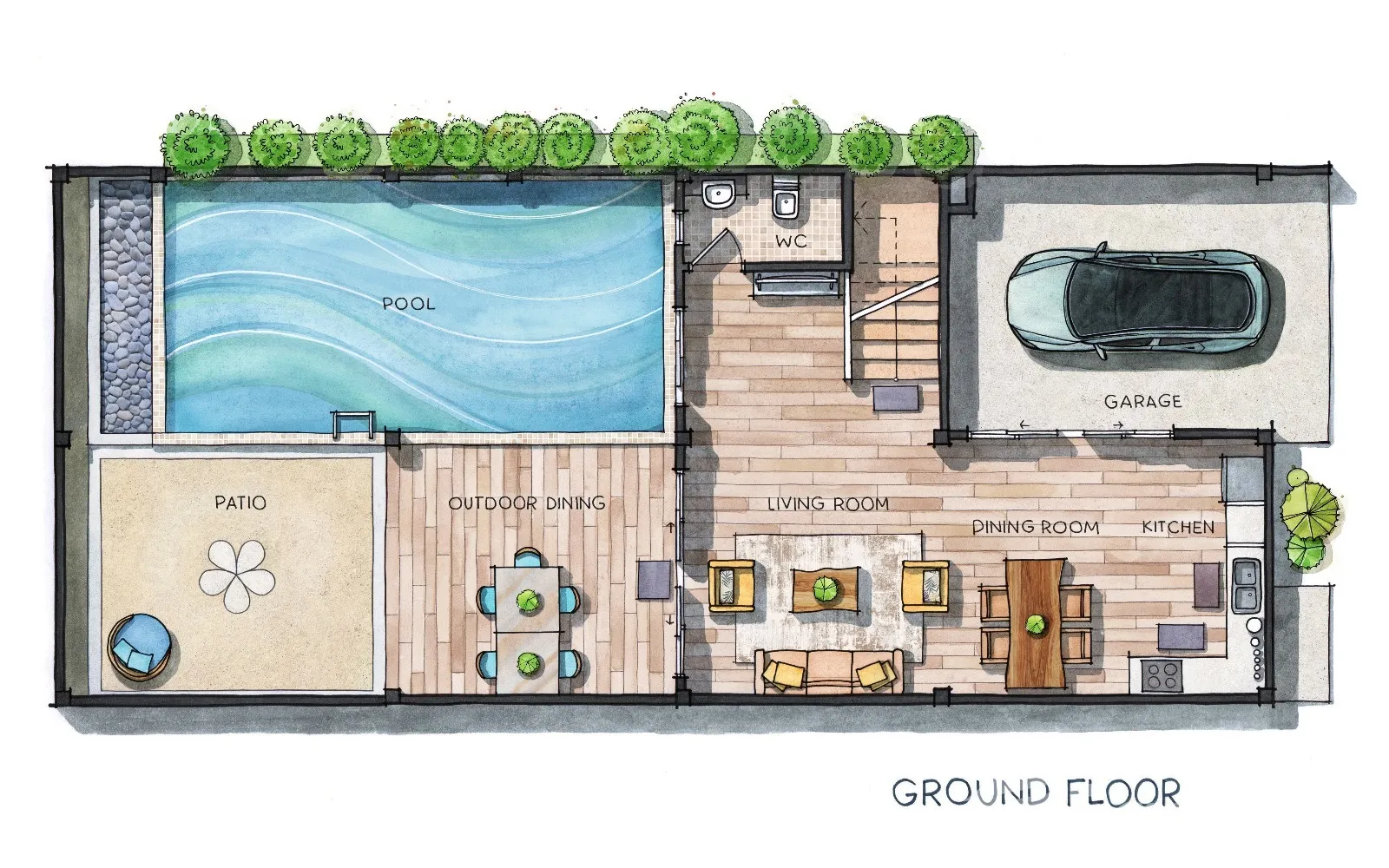 สระว่ายน้ำส่วนตัวสระว่ายน้ำส่วนตัว เข้าถึงสระส่วนกลางได้เข้าถึงสระส่วนกลางได้ สวนส่วนตัวสวนส่วนตัว ชานบ้านชานบ้าน ที่จอดรถที่จอดรถ ห้องอาบน้ำกลางแจ้งห้องอาบน้ำกลางแจ้ง