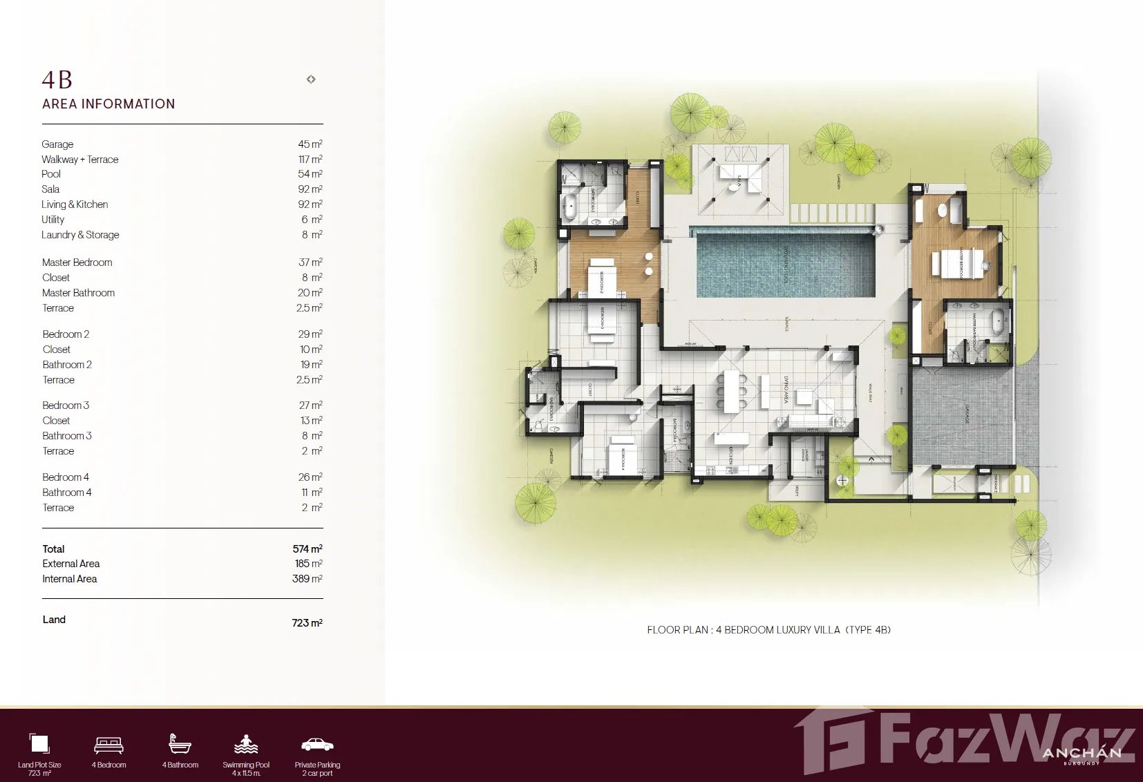 ขาย วิลล่า 4 ห้องนอน ในโครงการ Anchan Burgundy (อัญชัญ เบอร์กันดี)