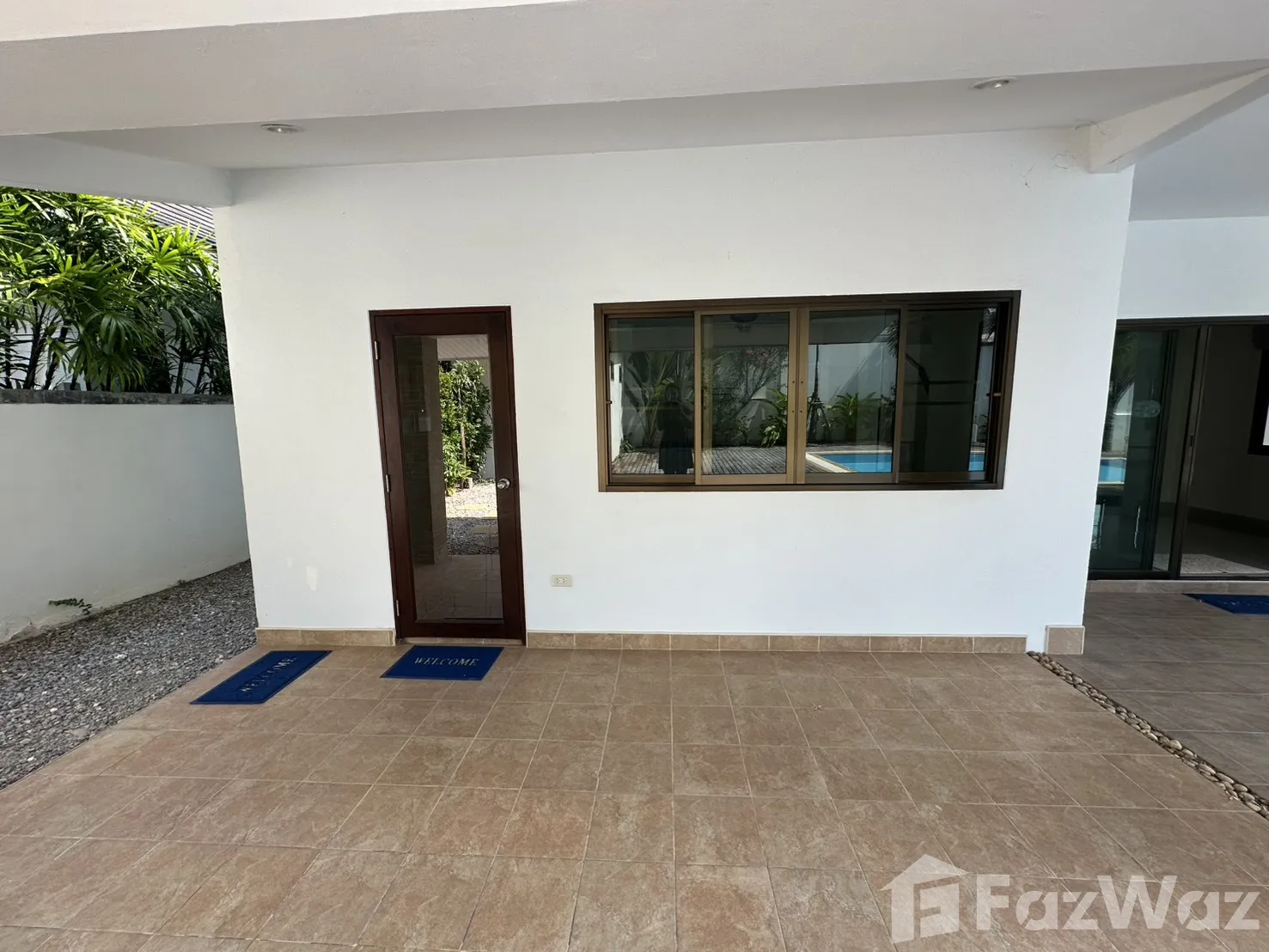 สระว่ายน้ำส่วนตัวสระว่ายน้ำส่วนตัว เข้าถึงสวนส่วนกลางได้เข้าถึงสวนส่วนกลางได้ ชานบ้านชานบ้าน ที่จอดรถที่จอดรถ