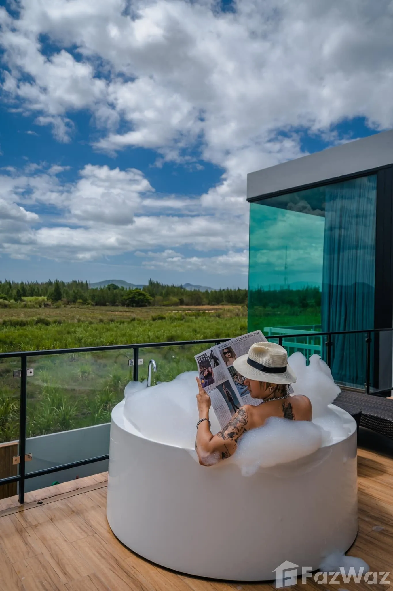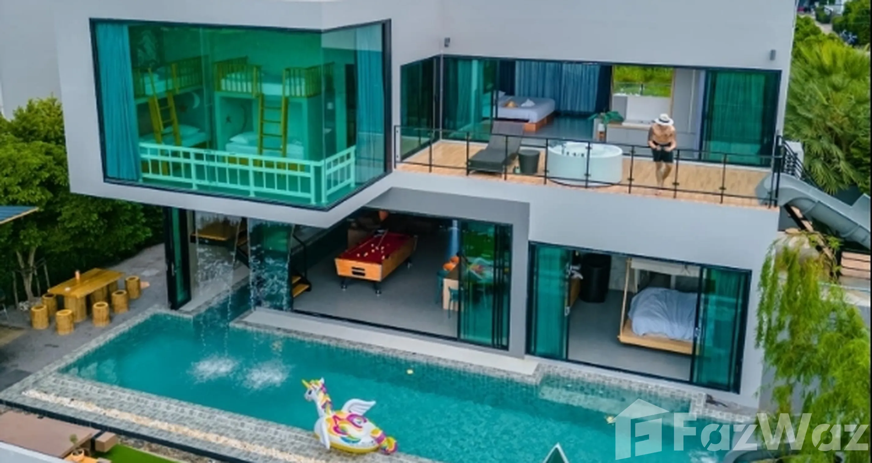 สระว่ายน้ำส่วนตัวสระว่ายน้ำส่วนตัว จากุซซี่จากุซซี่ ดาดฟ้าดาดฟ้า เตาไมโครเวฟเตาไมโครเวฟ ทีวีทีวี