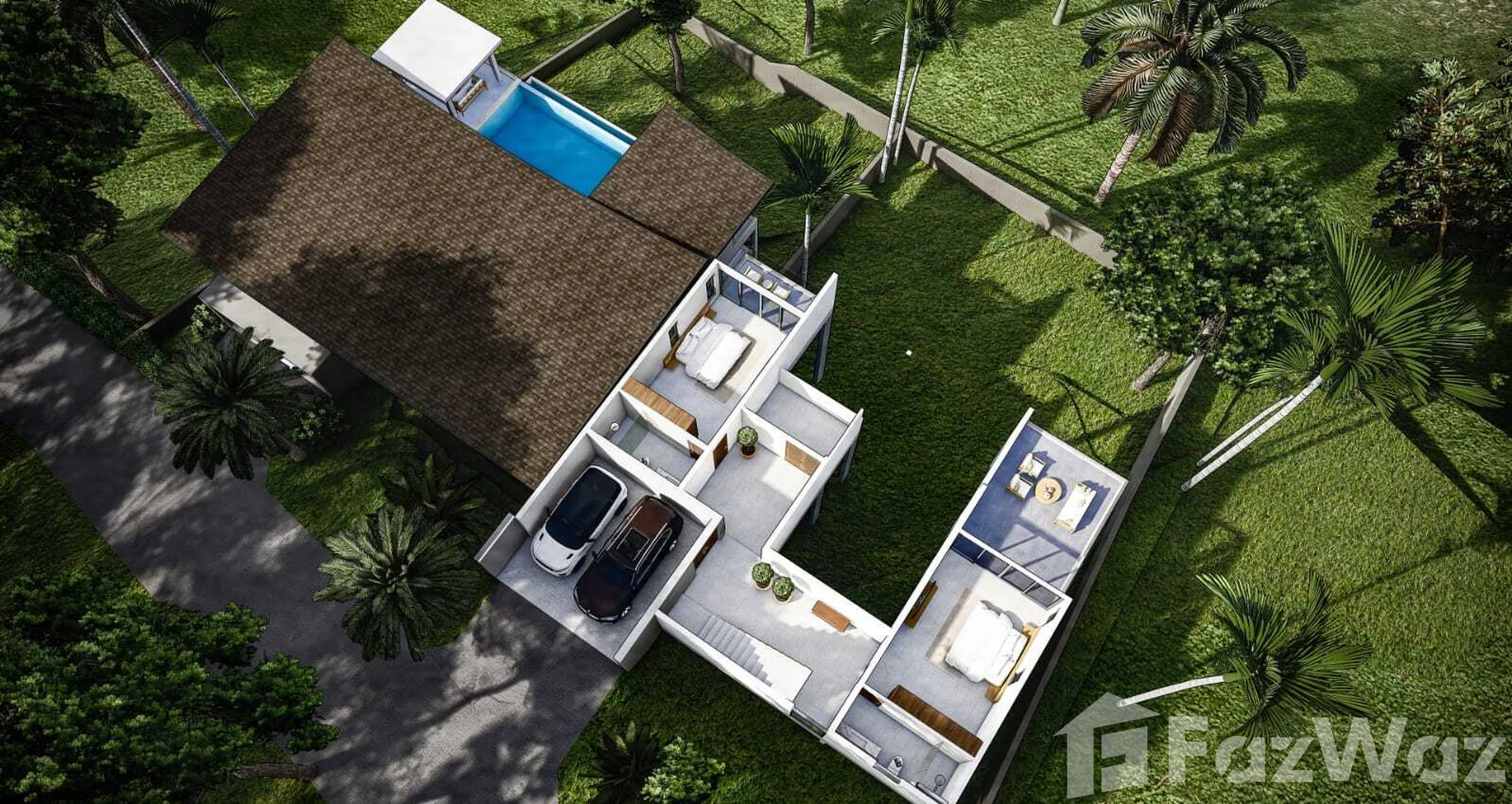 สระว่ายน้ำส่วนตัวสระว่ายน้ำส่วนตัว ชานบ้านชานบ้าน ที่จอดรถที่จอดรถ
