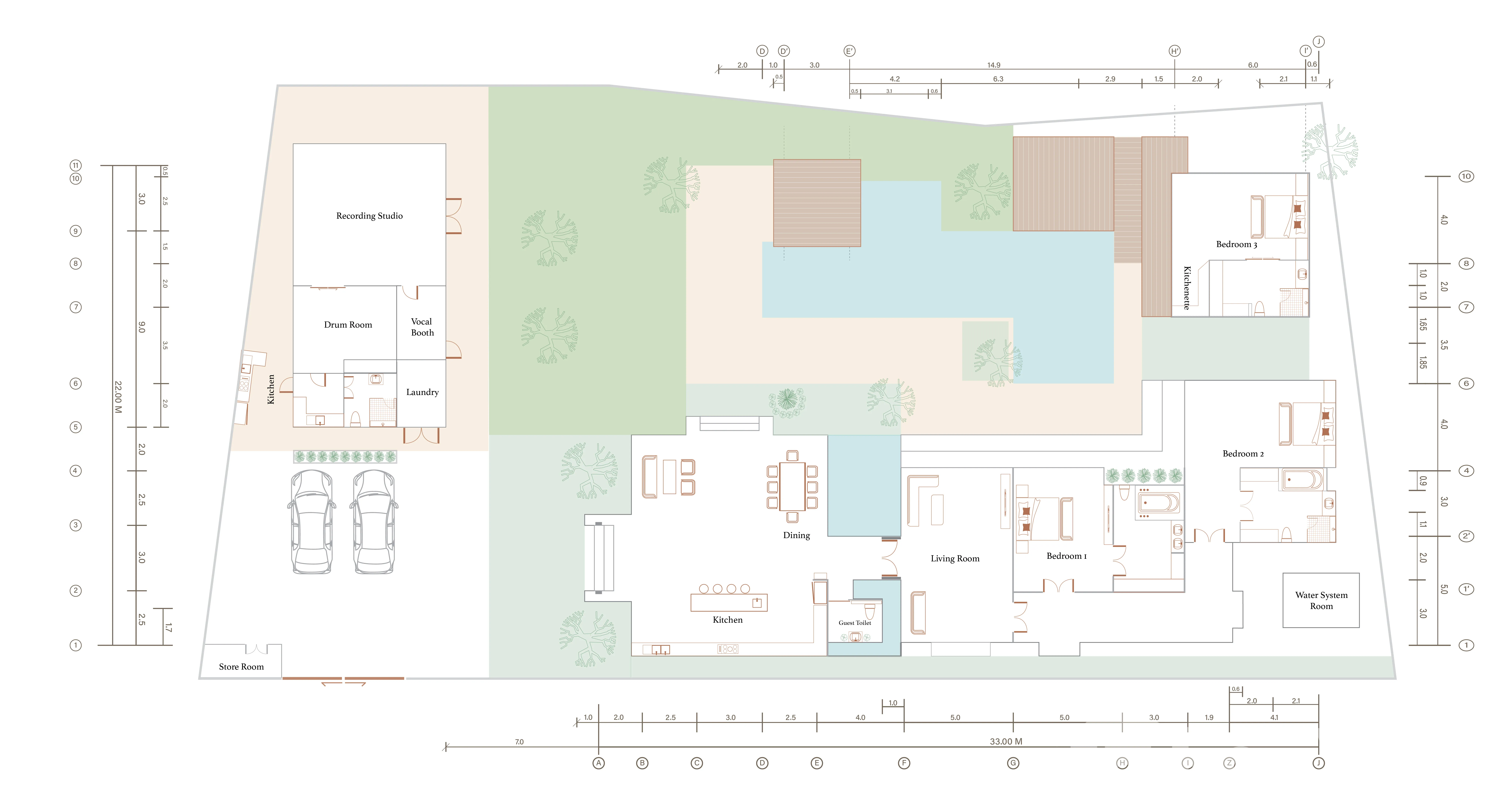 เป็นการรวมขนาดของพื้นที่ก่อสร้างภายนอก เช่น สระว่ายน้ำ, ชานบ้าน, ที่จอดรถ และ ศาลา แต่จะไม่รวมพื้นที่สวนเข้าไปด้วย