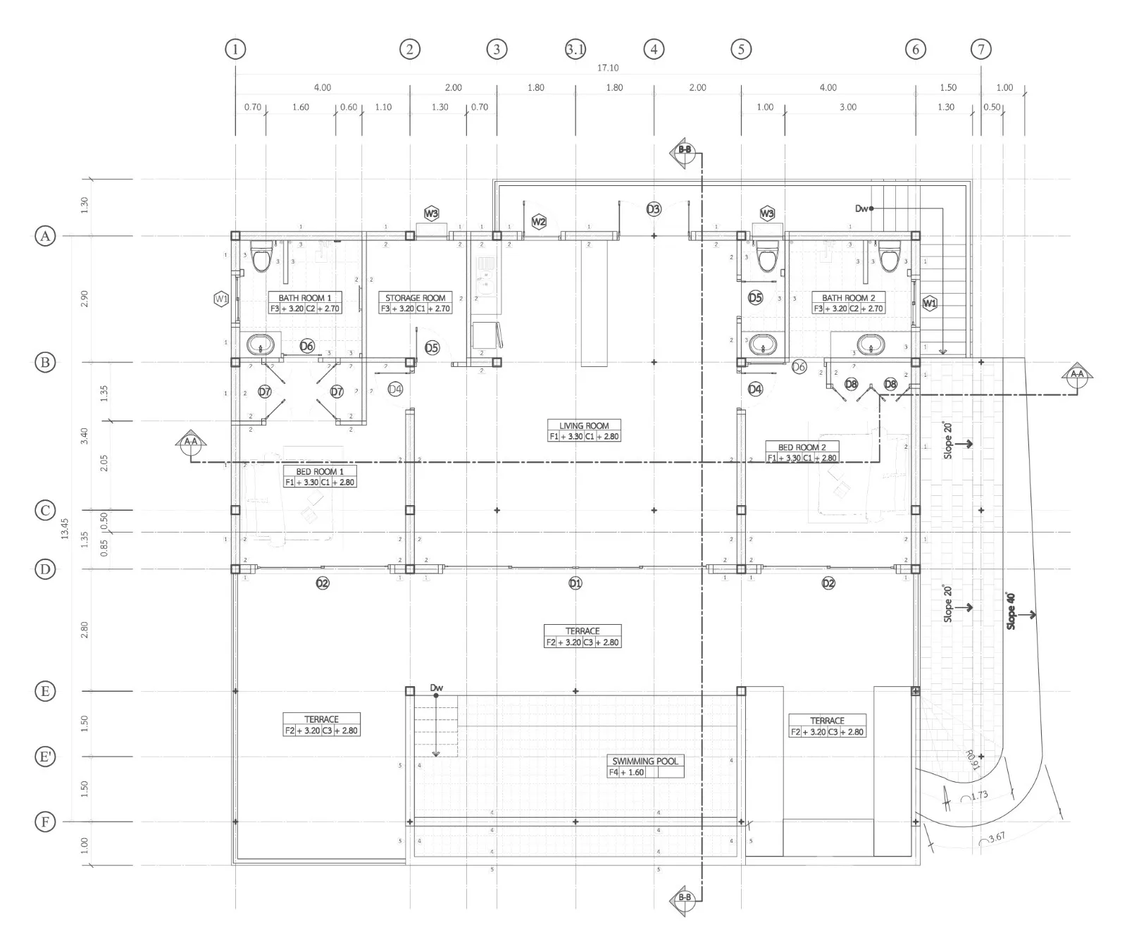 เป็นการรวมขนาดของพื้นที่ก่อสร้างภายนอก เช่น สระว่ายน้ำ, ชานบ้าน, ที่จอดรถ และ ศาลา แต่จะไม่รวมพื้นที่สวนเข้าไปด้วย