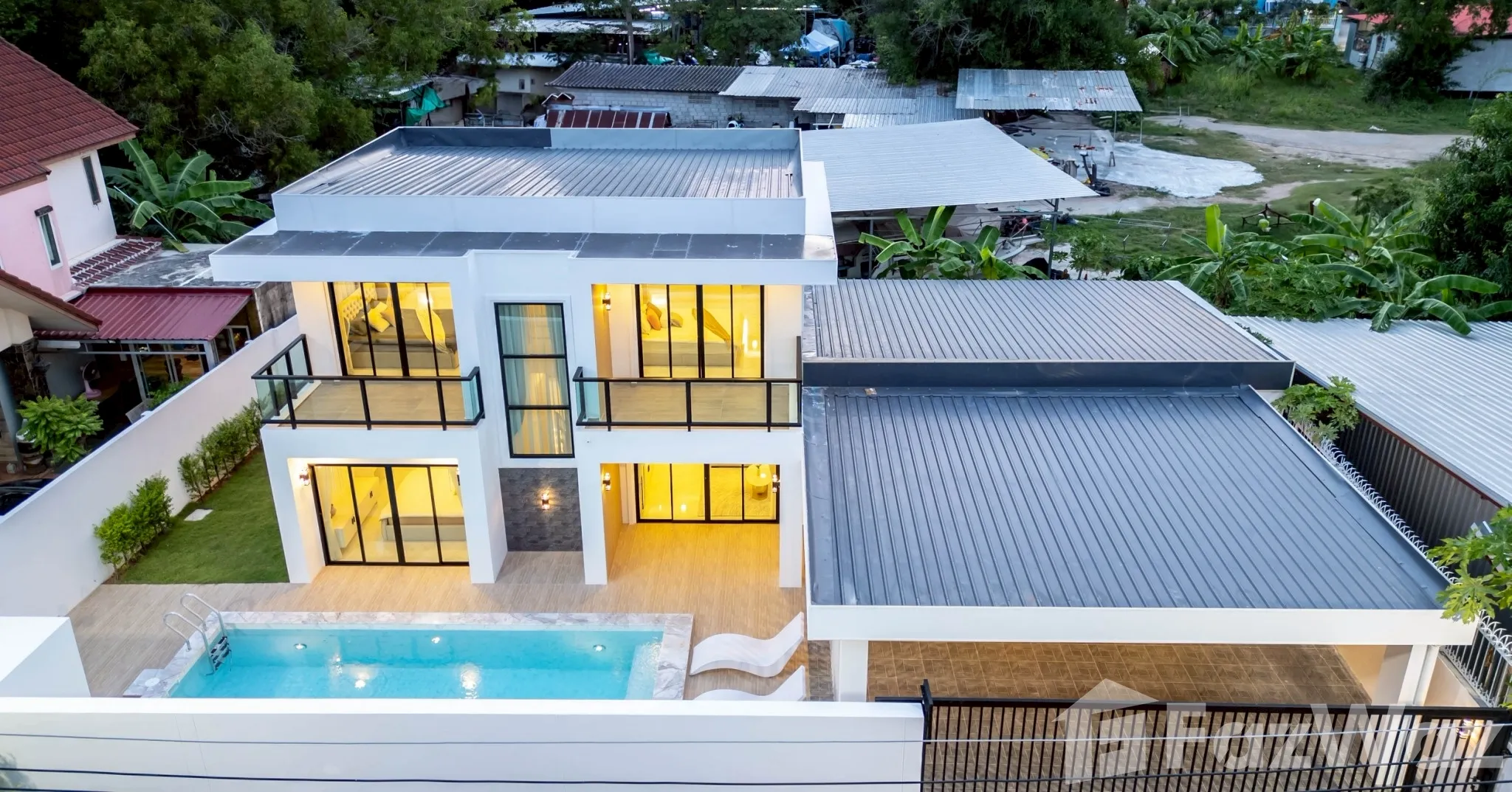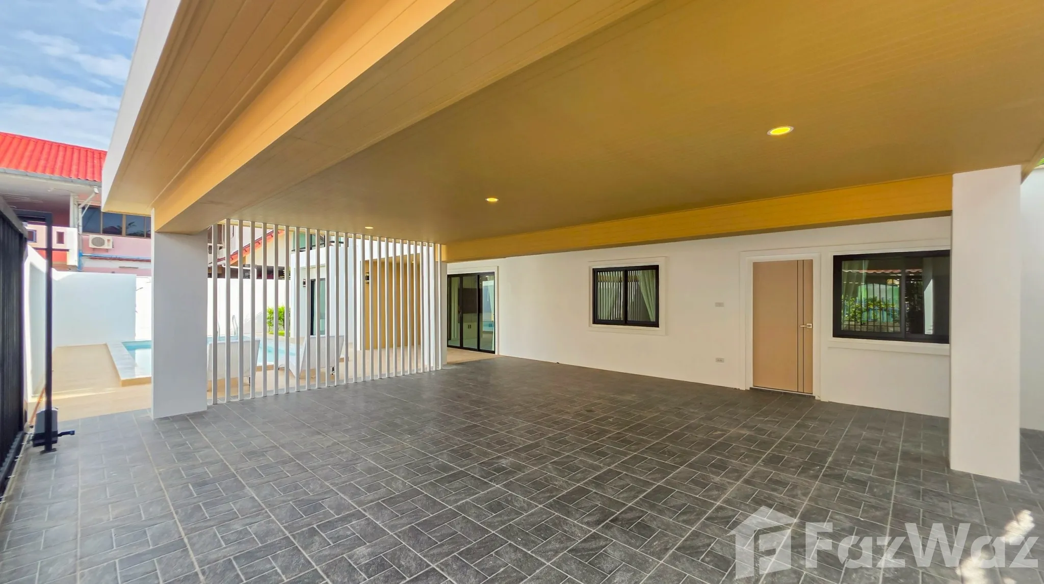 สระว่ายน้ำส่วนตัวสระว่ายน้ำส่วนตัว สวนส่วนตัวสวนส่วนตัว ชานบ้านชานบ้าน ที่จอดรถที่จอดรถ ระเบียงระเบียง