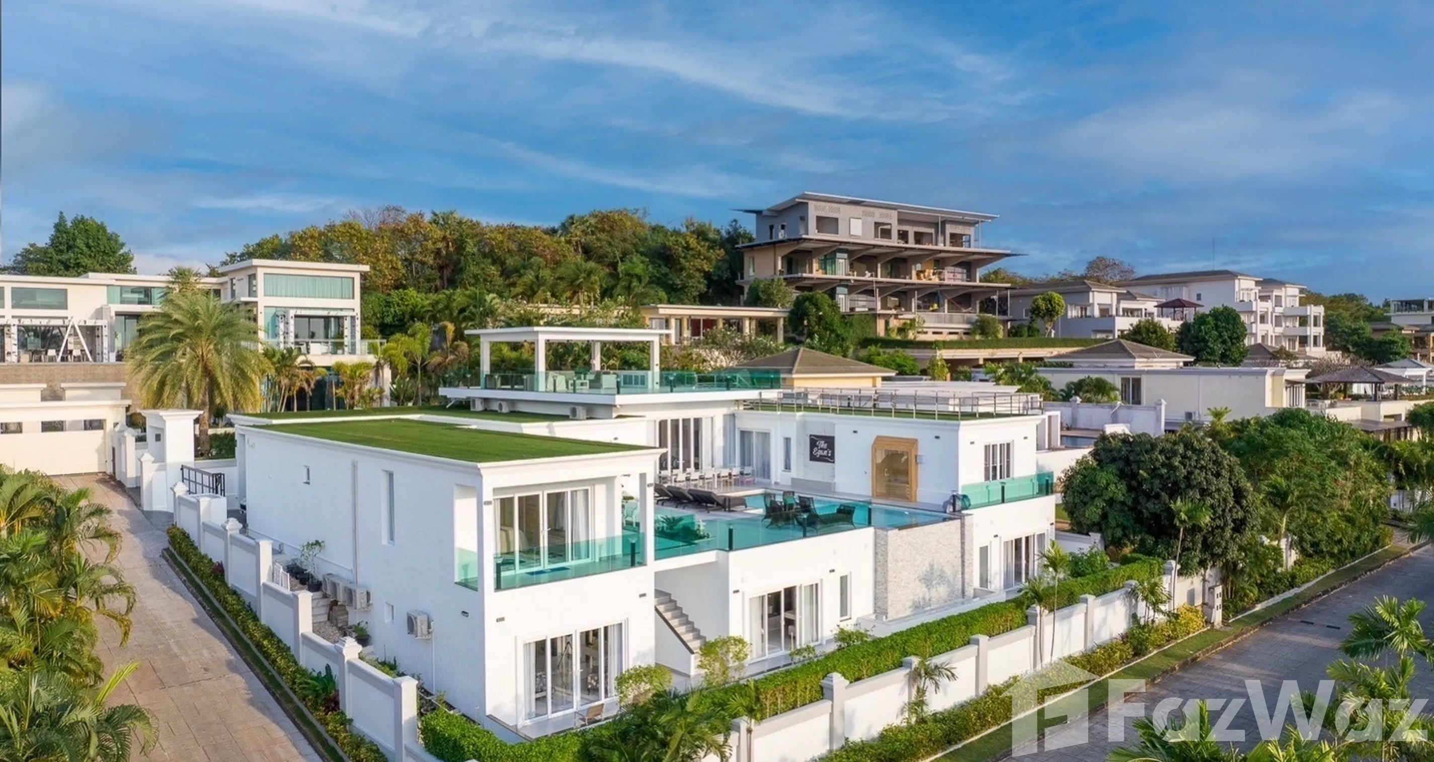 ประสบการณ์การพักพูลวิลล่าสุดหรู ขนาด 5 ห้องนอน พร้อมสิ่งอำนวยความสะดวกต่าง ๆ มากมายภายในวิลล่า ตกแต่งได้สวยงาม หรูหราและทันสมัยมาก ใช้วัสดุคุณภาพชั้นดี มีความแข็งแรง เน้นการใช้ไม้และหินอ่อนตกแต่งเป็นส่วนใหญ่ ห้องนอนพร้อมห้องน้ำในตัว มีพื้นที่กว้างขวาง พร้อมห้องครัว และอุปกรณ์ทำครัวครบครัน พื้นที่รอบบริเวณบ้านกว้างมาก สวนหย่อมขนาดใหญ่ มีพื้นที่พักผ่อนเยอะ สระว่ายน้ำใหญ่มาก ๆ ถูกใจสุด ๆ เลย ให้ความอบอุ่นเสมือนกับอยู่ที่บ้าน และมีความเป็นส่วนตัวสุด ๆ เพราะรั้วของบ้านสูงมาก จากโครงการเดินทางสะดวก ไม่ไกลจากถนนสุขุมวิท และมอเตอร์เวย์ชลบุรี-พัทยา และขับรถเพียง 10 นาที ก็จะเจอกับสิ่งอำนวยความสะดวกมากมาย ทั้งเทสโก้ โลตัส, แม็คโคร และเอาท์เล็ทมอลล์ พัทยา