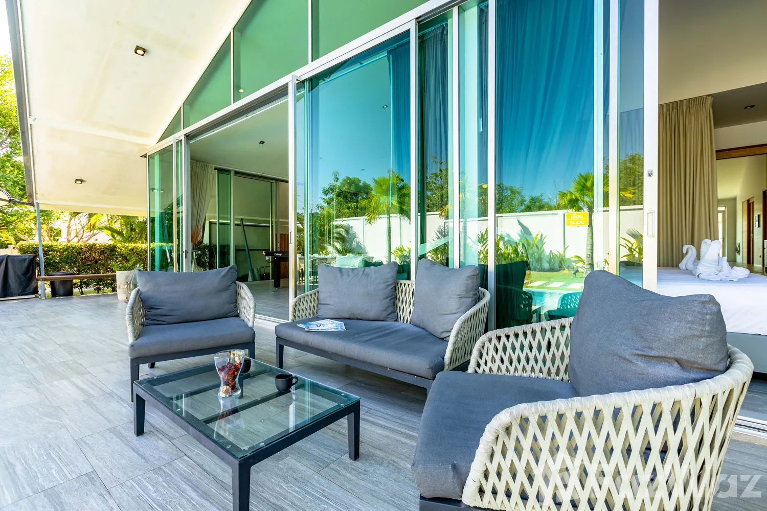 สระว่ายน้ำส่วนตัวสระว่ายน้ำส่วนตัว สวนส่วนตัวสวนส่วนตัว ชานบ้านชานบ้าน ที่จอดรถที่จอดรถ ครัวฝรั่งครบชุดครัวฝรั่งครบชุด ทีวีทีวี