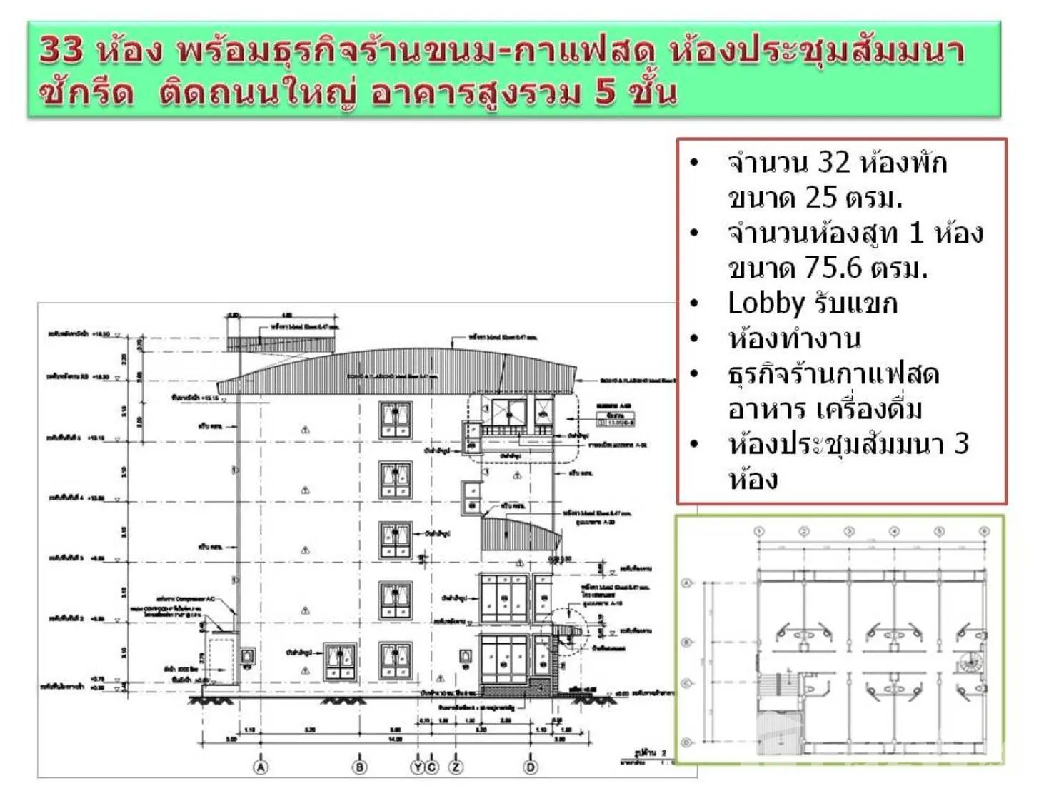 • ดำเนินกิจการต่อได้ทันที มีลูกค้ารายวัน-รายเดือน พร้อมรายได้จากห้องประชุม-คาเฟ่-ตู้หยอดเหรียญ-ป้ายโฆษณา