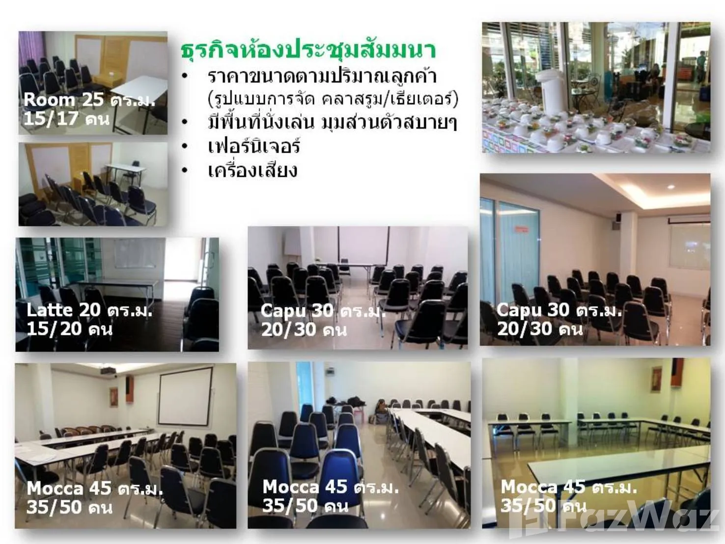 • ห้องประชุม 2 ห้อง (รองรับ 15–50 คน)