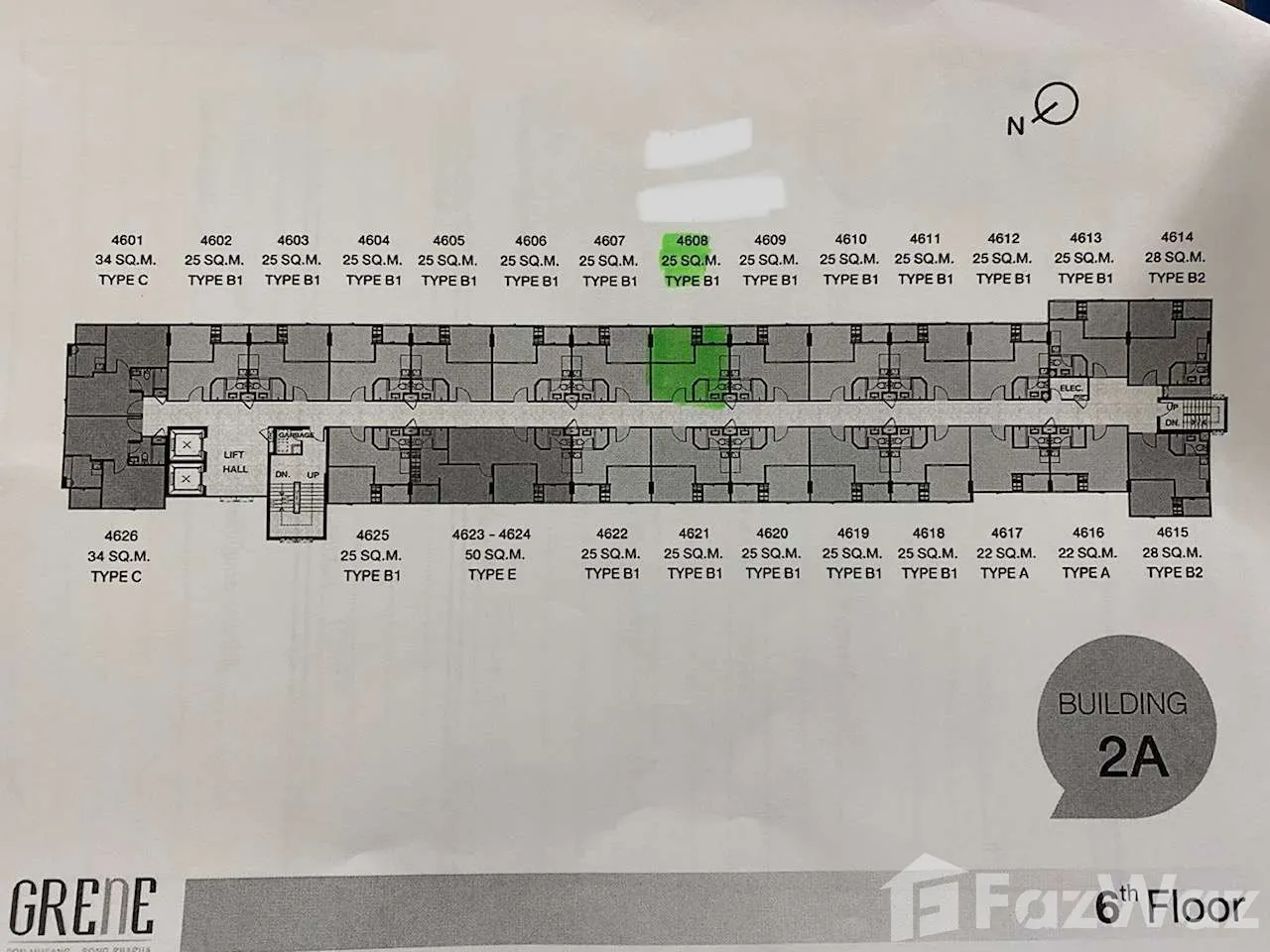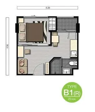 · เฟส 2 ขนาด 25 ตร.ม. อาคาร 2A ชั้น 6 ประเภท 1 ห้องนอน 1 ห้องน้ำ