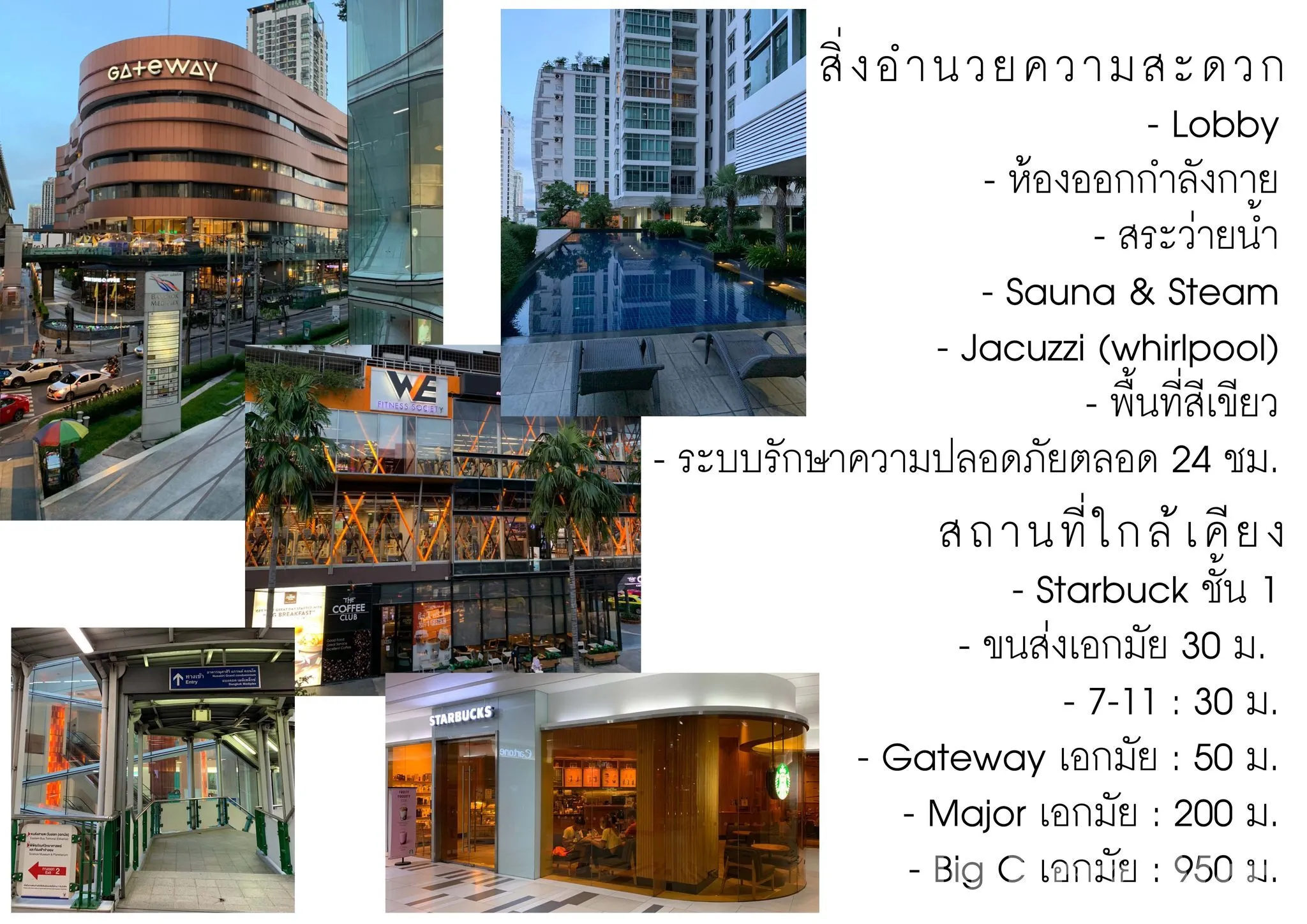 ตั้งอยู่บนทำเลที่สะดวกสบายมาก ๆ มีทางเชื่อมจาก BTS เอกมัยเลยค่ะ ติดกับคอนโดมีห้างเกตเวย์เอกมัย และใกล้ ๆ ก็มีโรงพยาบาล ถือว่าอาศัยอยู่ที่นี่มีความสะดวกและสิ่งอำนวยความสะดวกที่ครบครันมาก ตัวคอนโดเองไม่ได้ใหม่เท่าไหร่ แต่ก็มีพื้นที่ส่วนกลางให้บริการ เช่น สระว่ายน้ำ พื้นที่พักผ่อนและฟิตเนส พนักงานต้อนรับก็ให้คำแนะนำดีมากค่ะ ที่นี่มีทั้งชาวไทยและชาวต่างชาติอาศัยอยู่เยอะเลยค่ะ