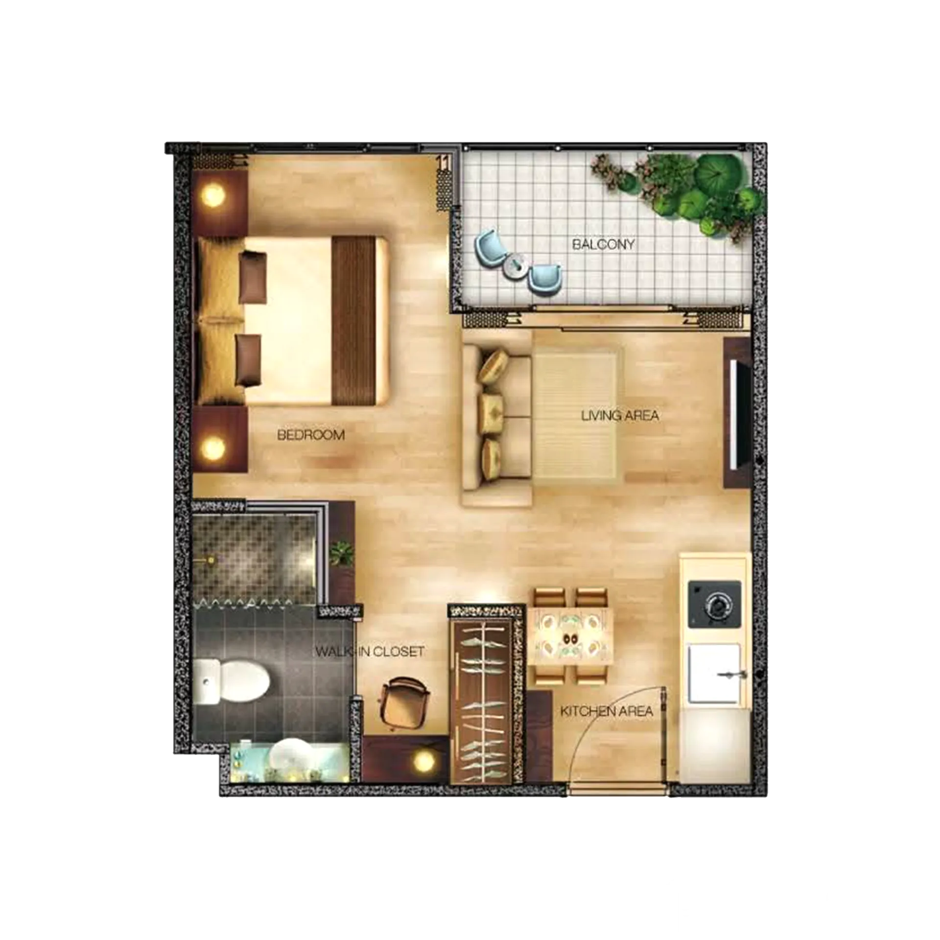 เป็นยูนิตที่ขายพร้อมกับเฟอร์นิเจอร์ครบชุด ที่เรียกได้ว่าเพียงแค่ยกกระเป๋าเสื้อผ้าเข้าไปก็สามารถอยู่อาศัยได้ทันที โดยมักจะมีเฟอร์นิเจอร์ตั้งแต่โซฟา ชั้นวางทีวี ในห้องรับแขก หรืออุปกรณ์เครื่องครัวทั้งหมด รวมไปถึงโต๊ะอาหาร ไล่เรียงไปยังเตียงนอนและตู้เสื้อผ้า ในห้องนอน (รายละเอียดปลีกย่อยอื่นๆ ขึ้นอยู่กับแต่ละยูนิต)